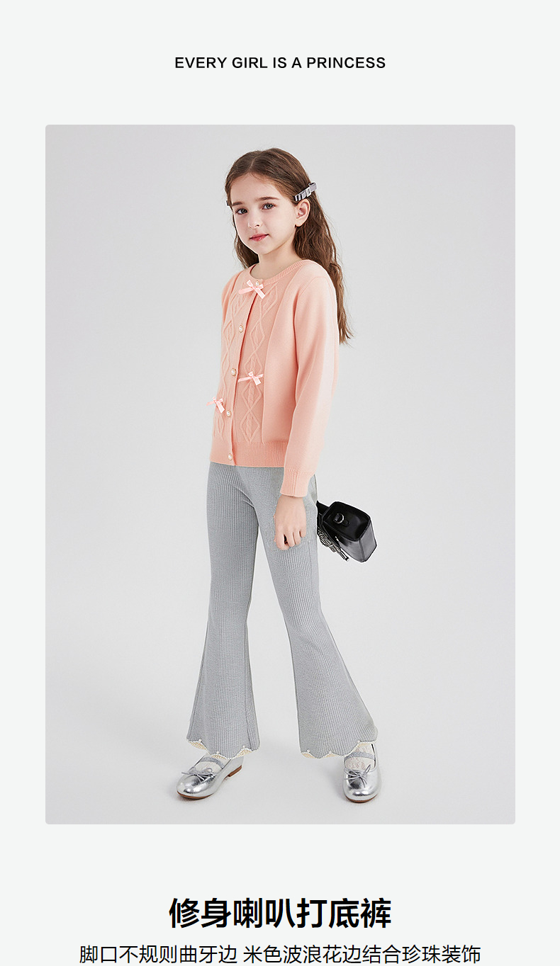 笛莎Deesha 童装女童裤子2025秋新款女童修身喇叭打底裤