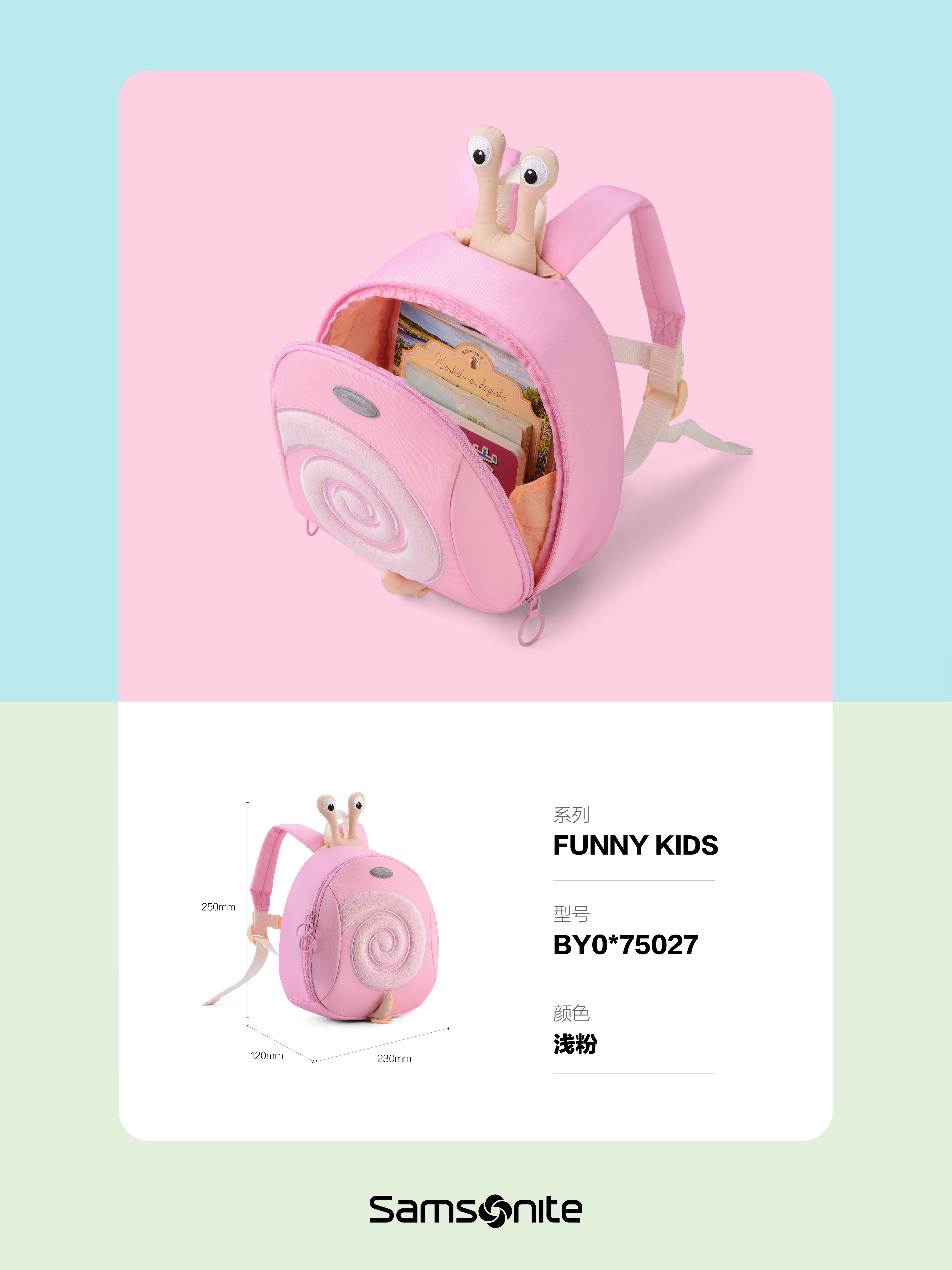 新秀丽萌宝系列可爱蜗牛粉色小书包BY0
