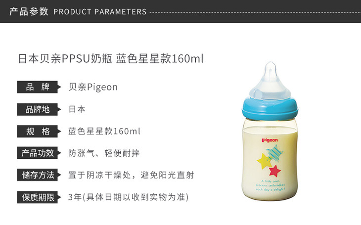 【一般贸易】日本PIGEON/贝亲 PPSU奶瓶 蓝色星星160ml
