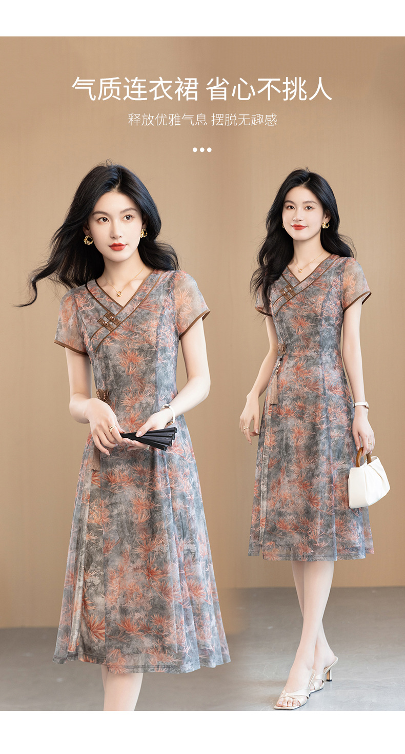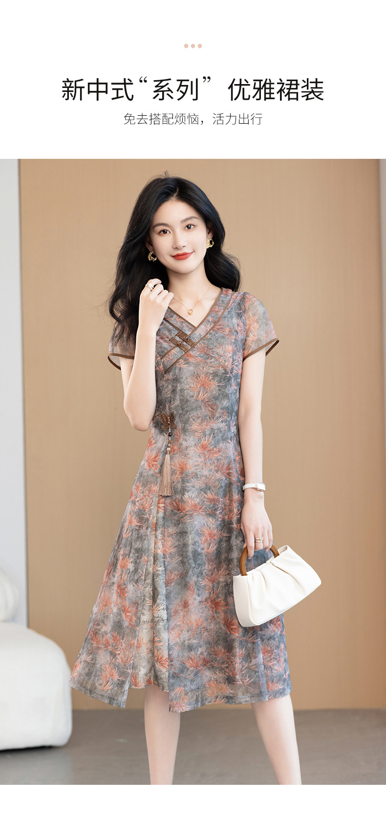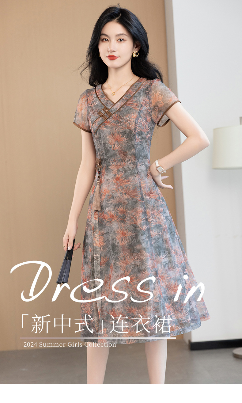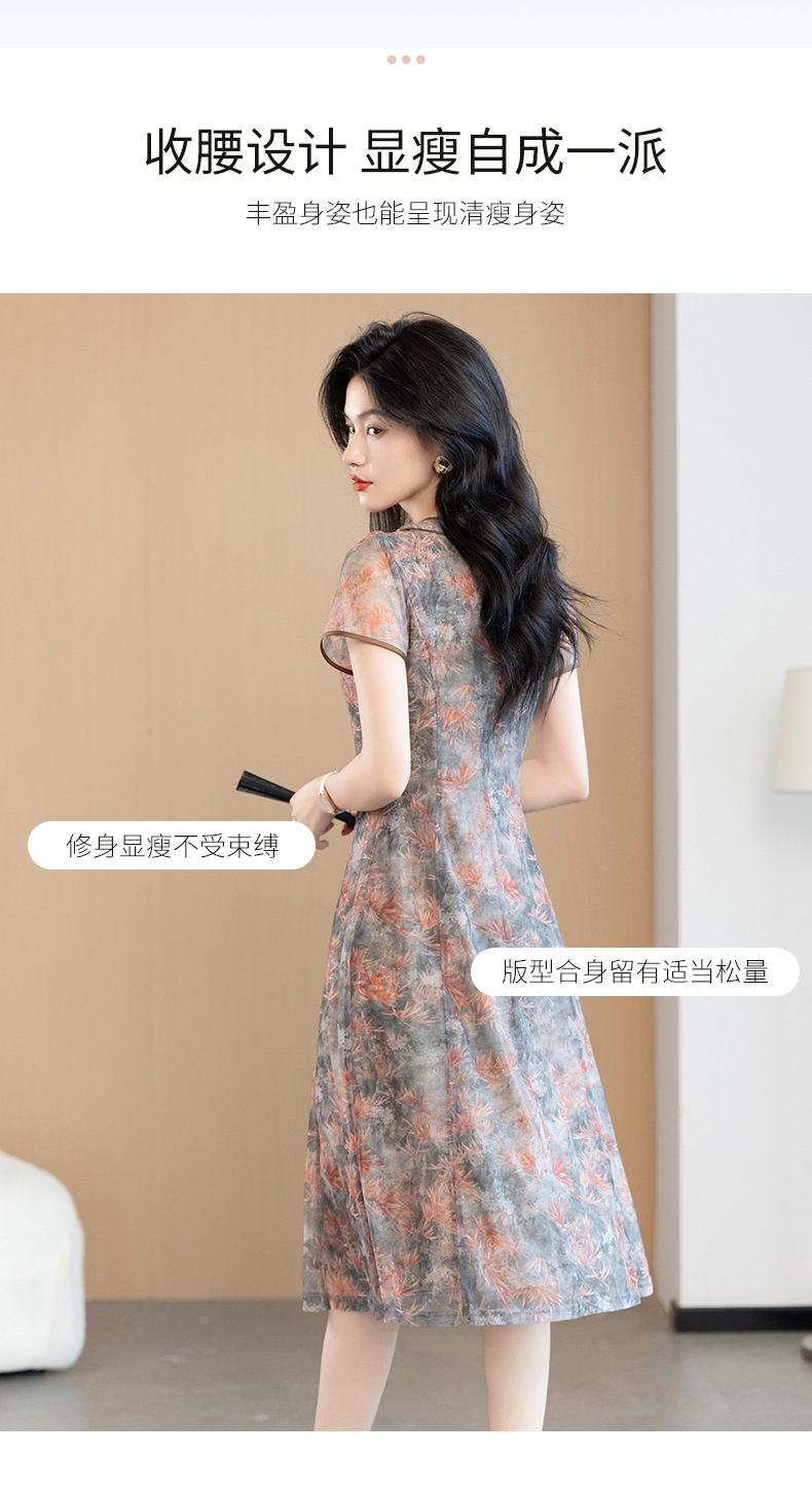 印花时尚气质,复古中式中长裙QYM-TB-FD1521-Y