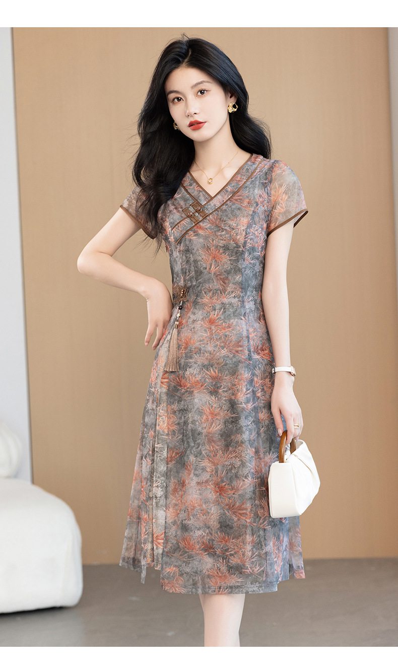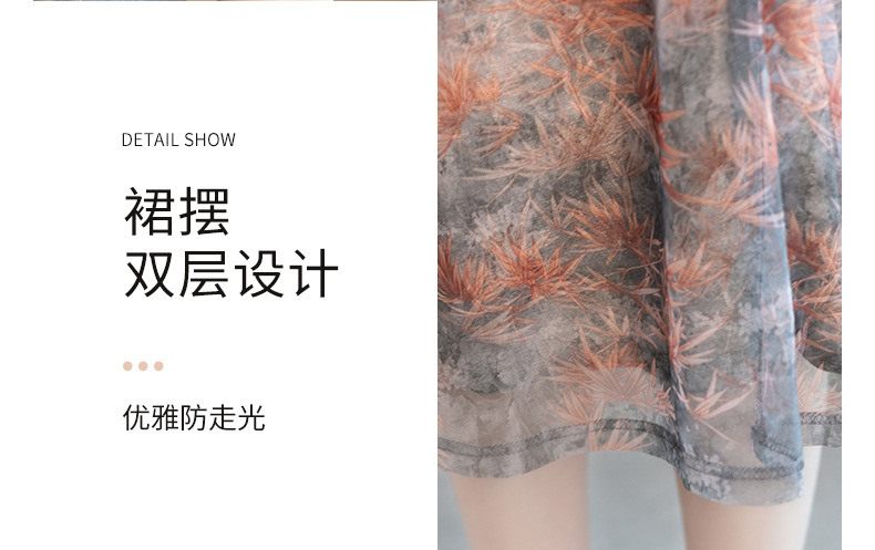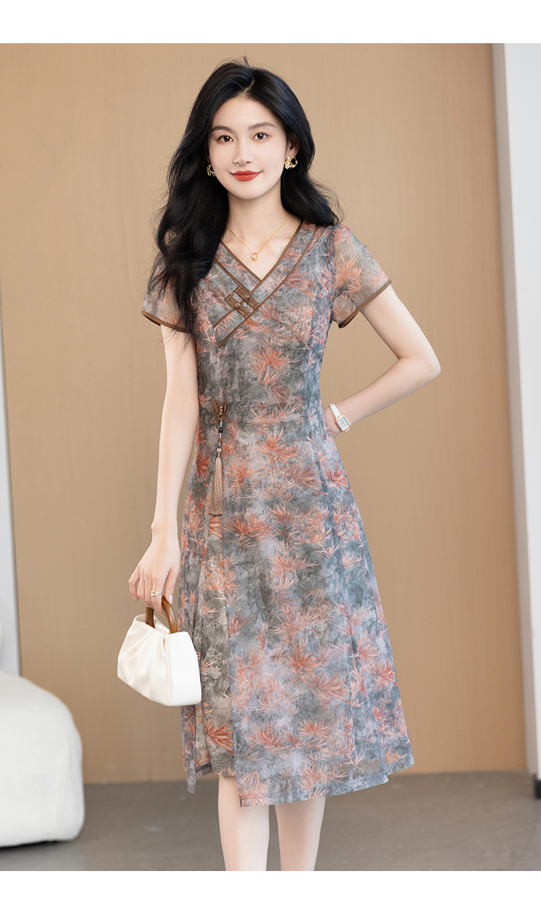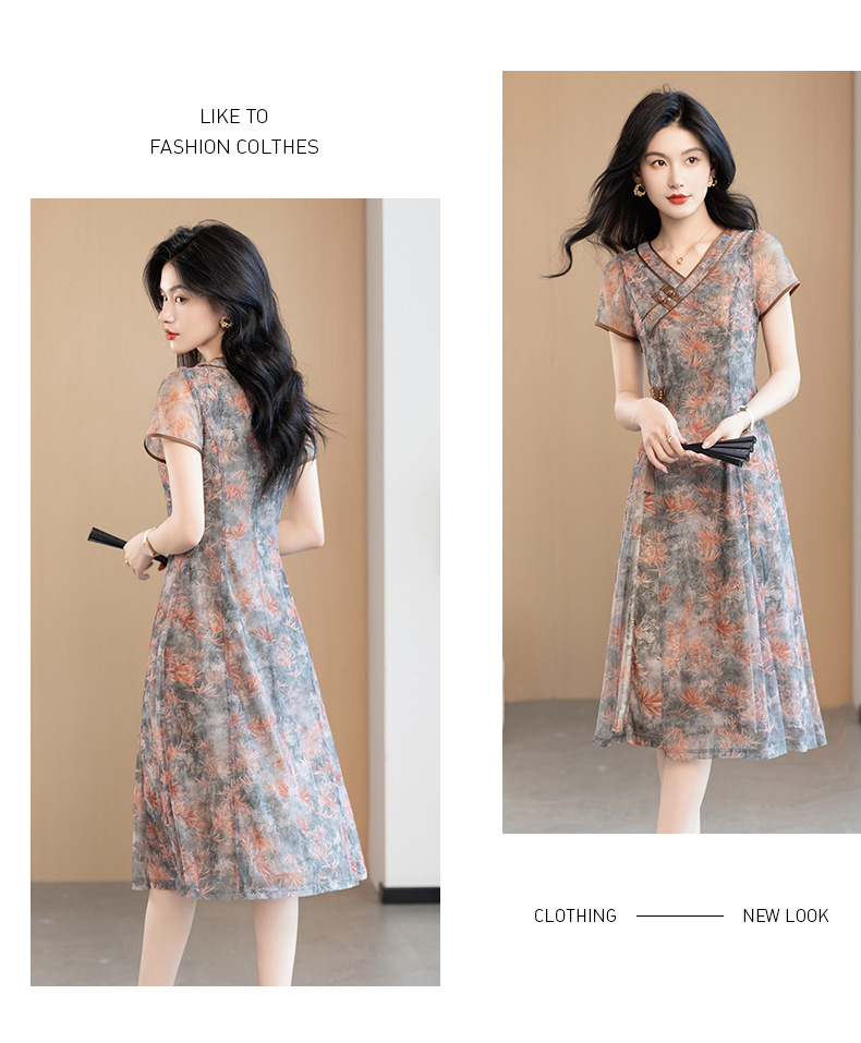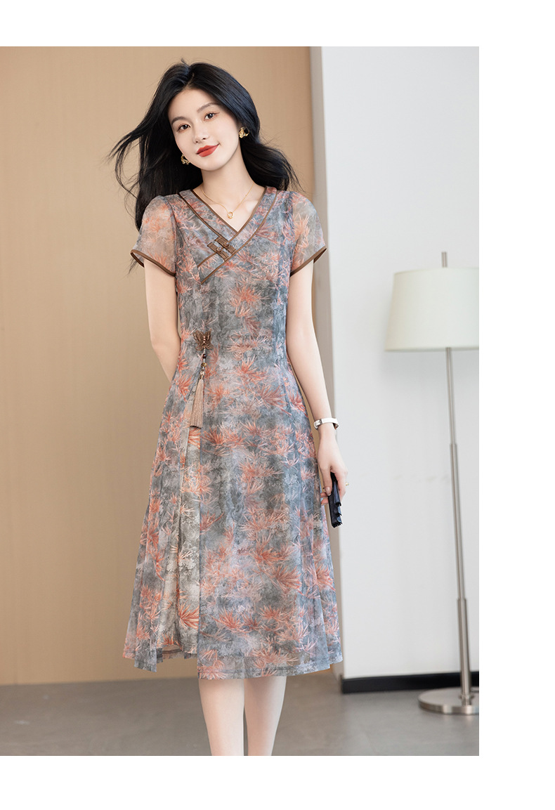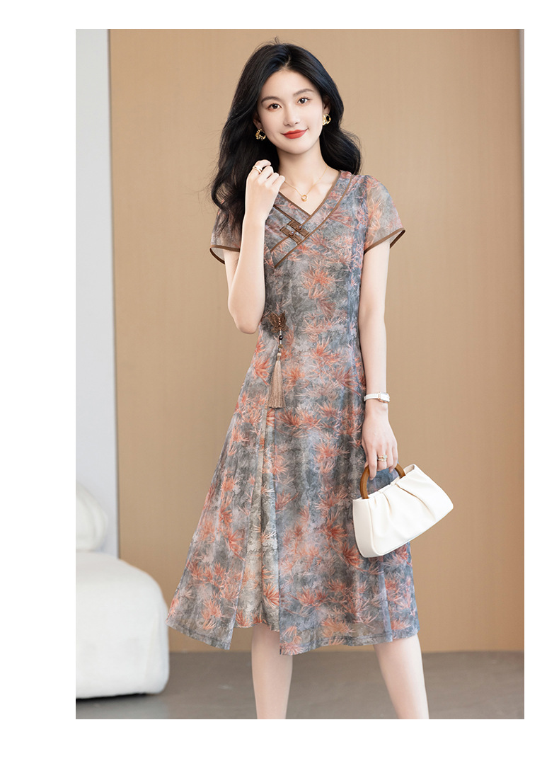 印花时尚气质,复古中式中长裙QYM-TB-FD1521-Y