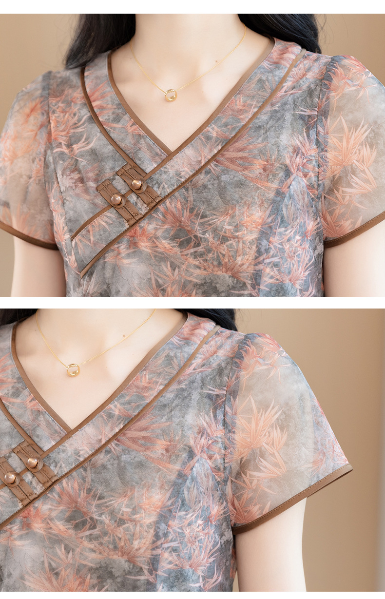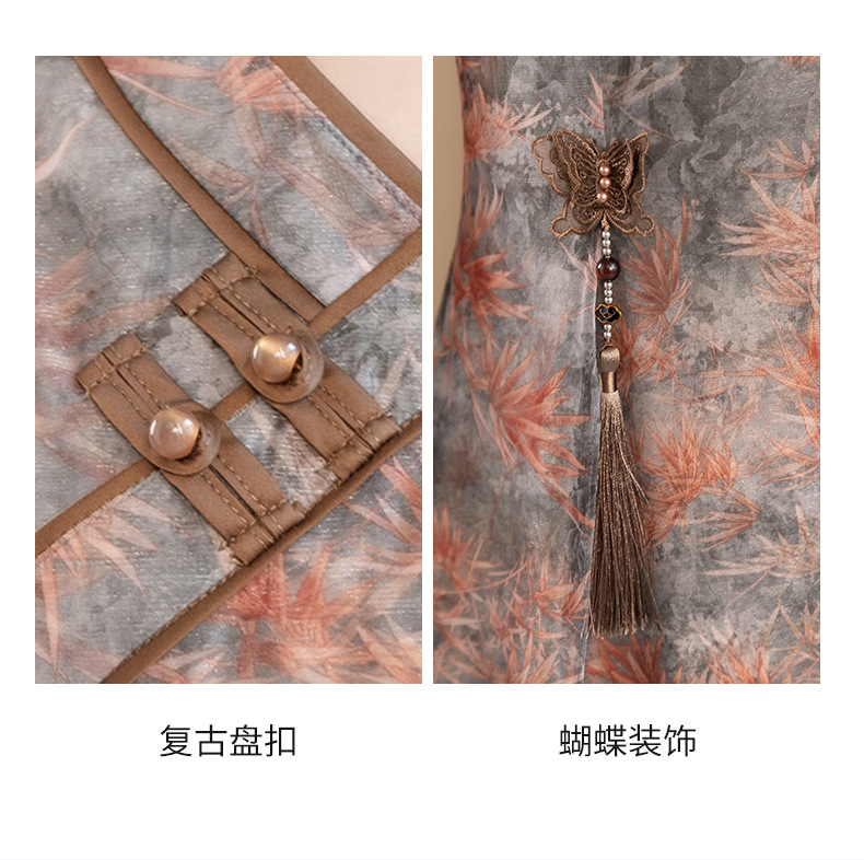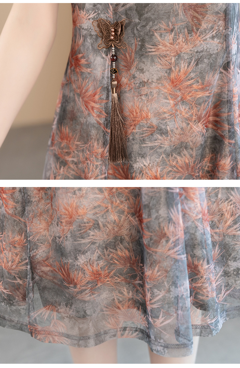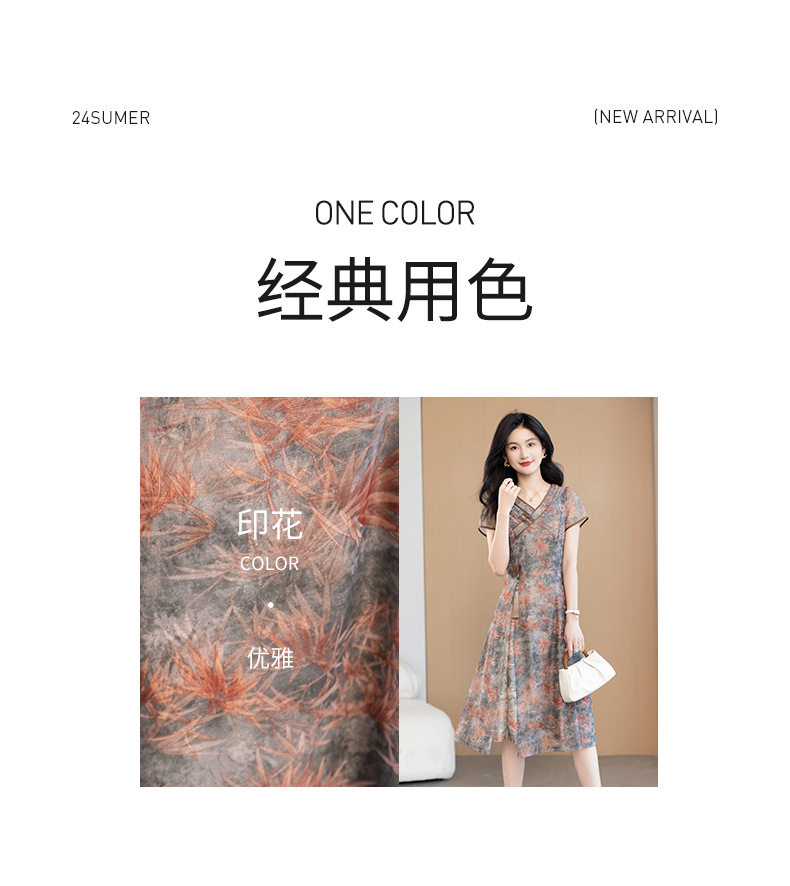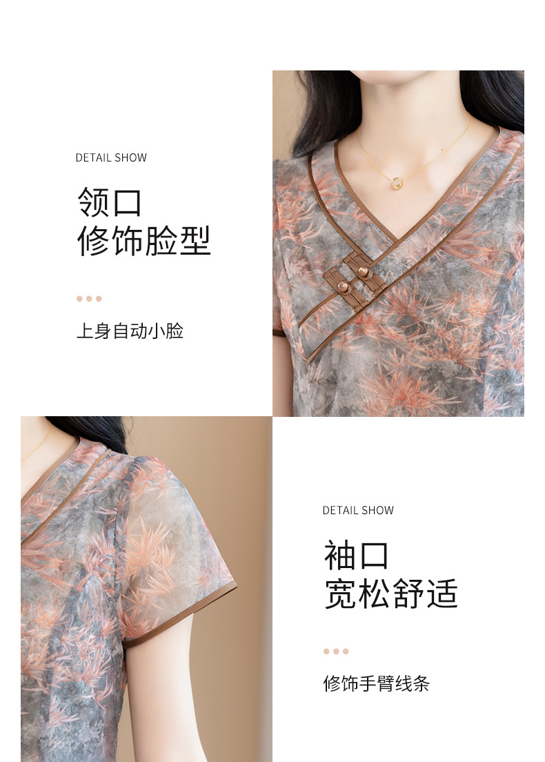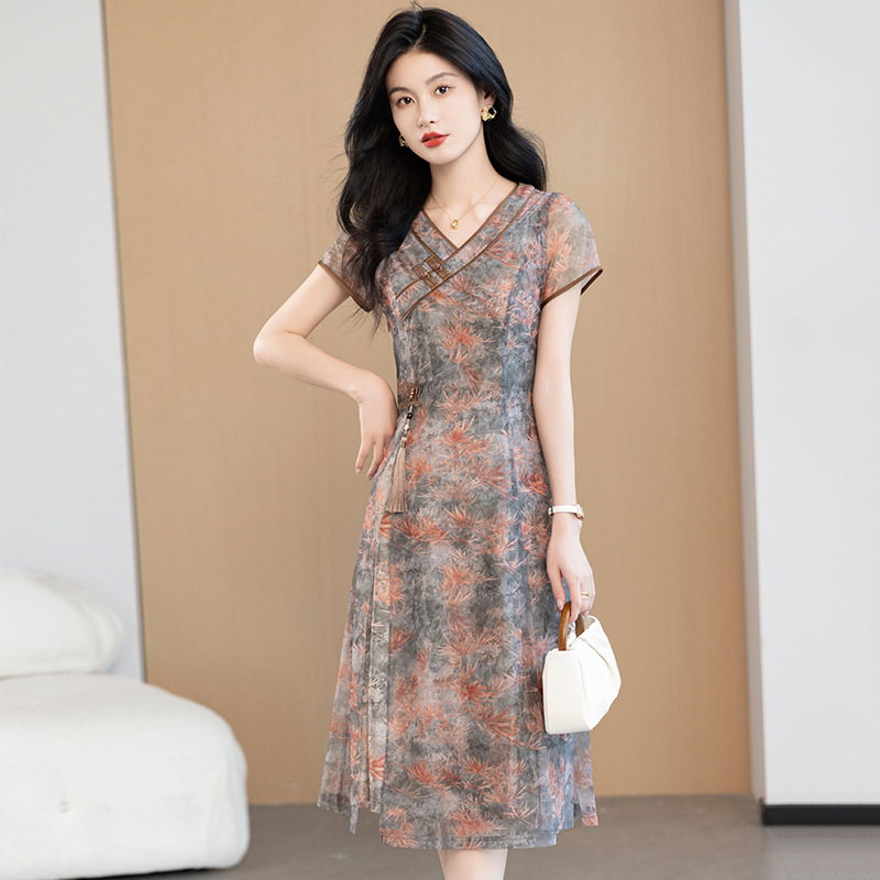 印花时尚气质,复古中式中长裙QYM-TB-FD1521-Y