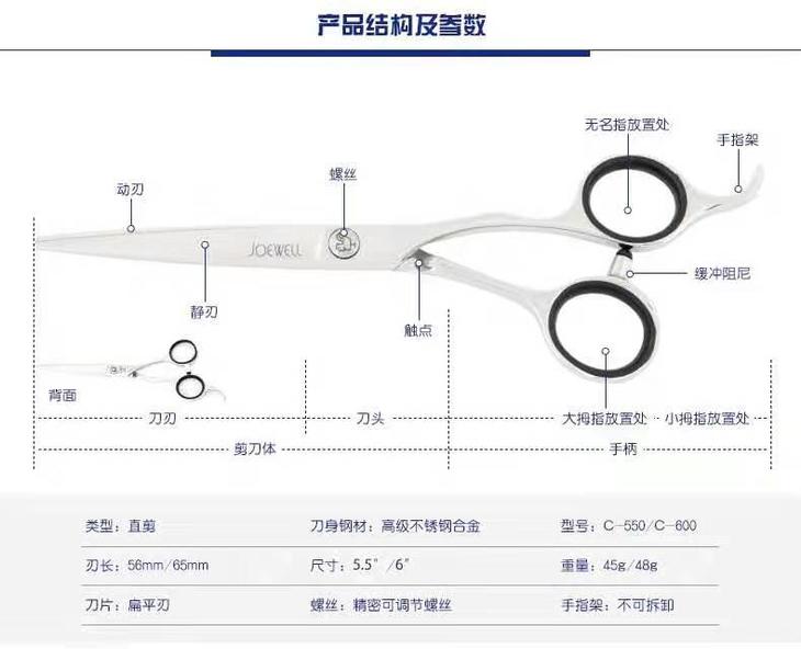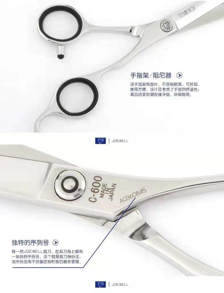 JOEWELL 井上鸡牌 C550/C600原装进口日本鸡剪专业美发剪刀理发店平剪 锋利/刘海/结构剪/线条剪/不跑发/平剪/5.5寸/6寸