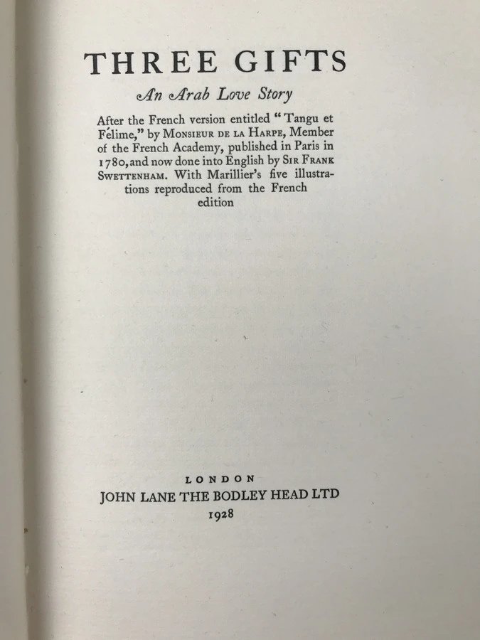 限量1500册 1928年 阿拉伯爱情故事《三件礼物》 5幅彩色铜版画插图 精装大32开