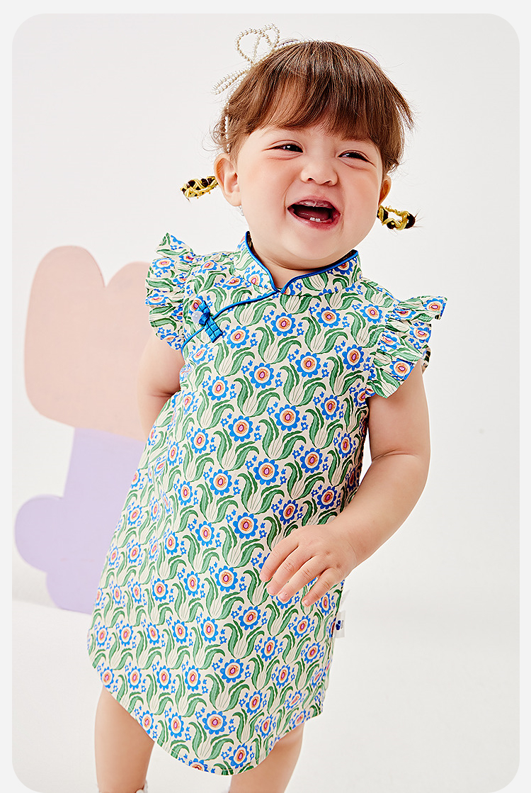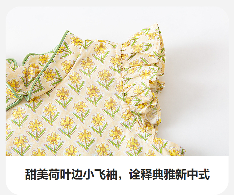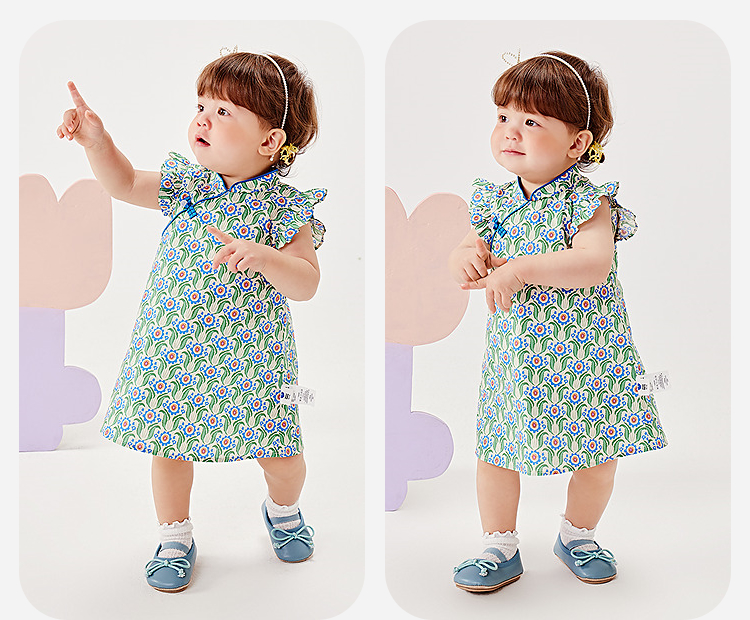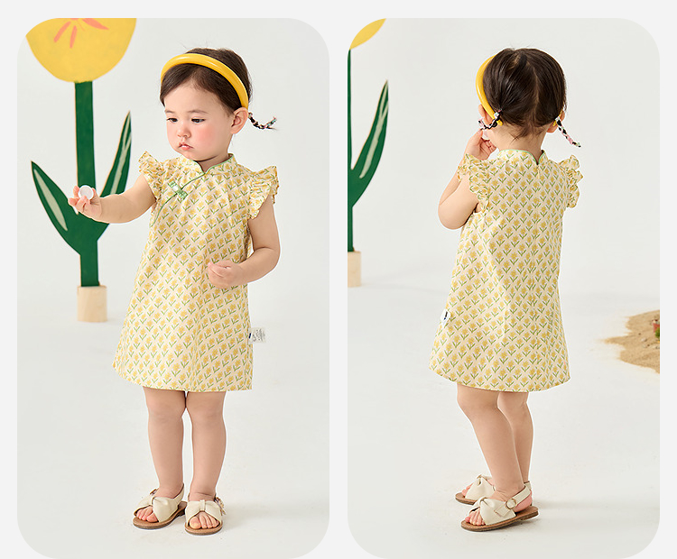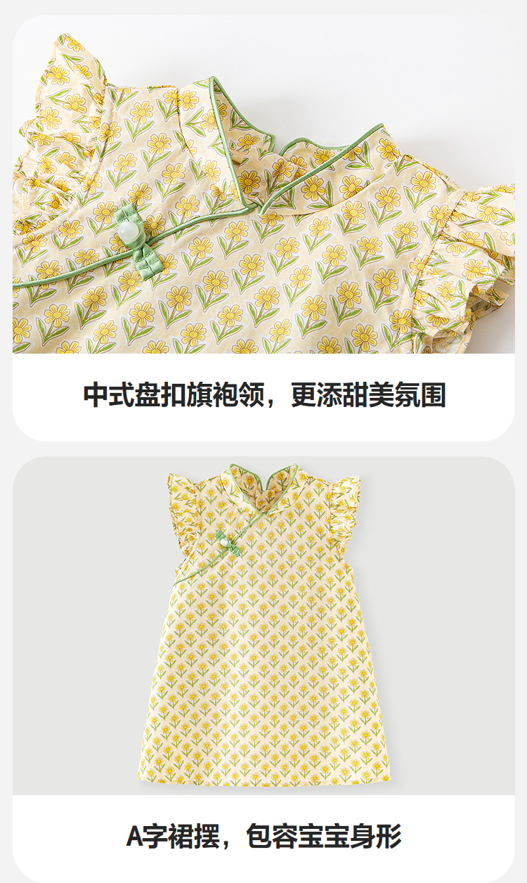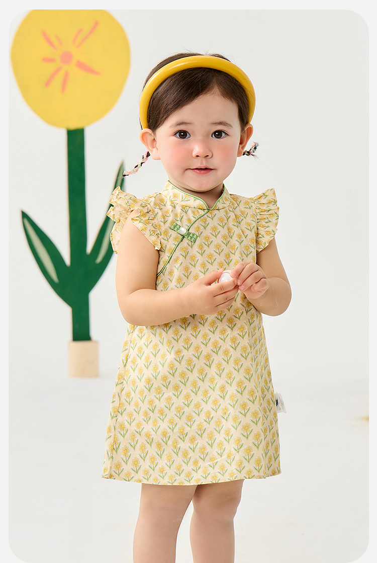【纯棉】迷你巴拉新中式连衣女童宝宝不易变形飞袖旗袍裙亲肤