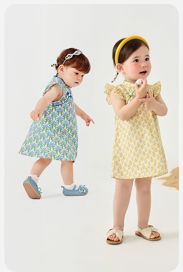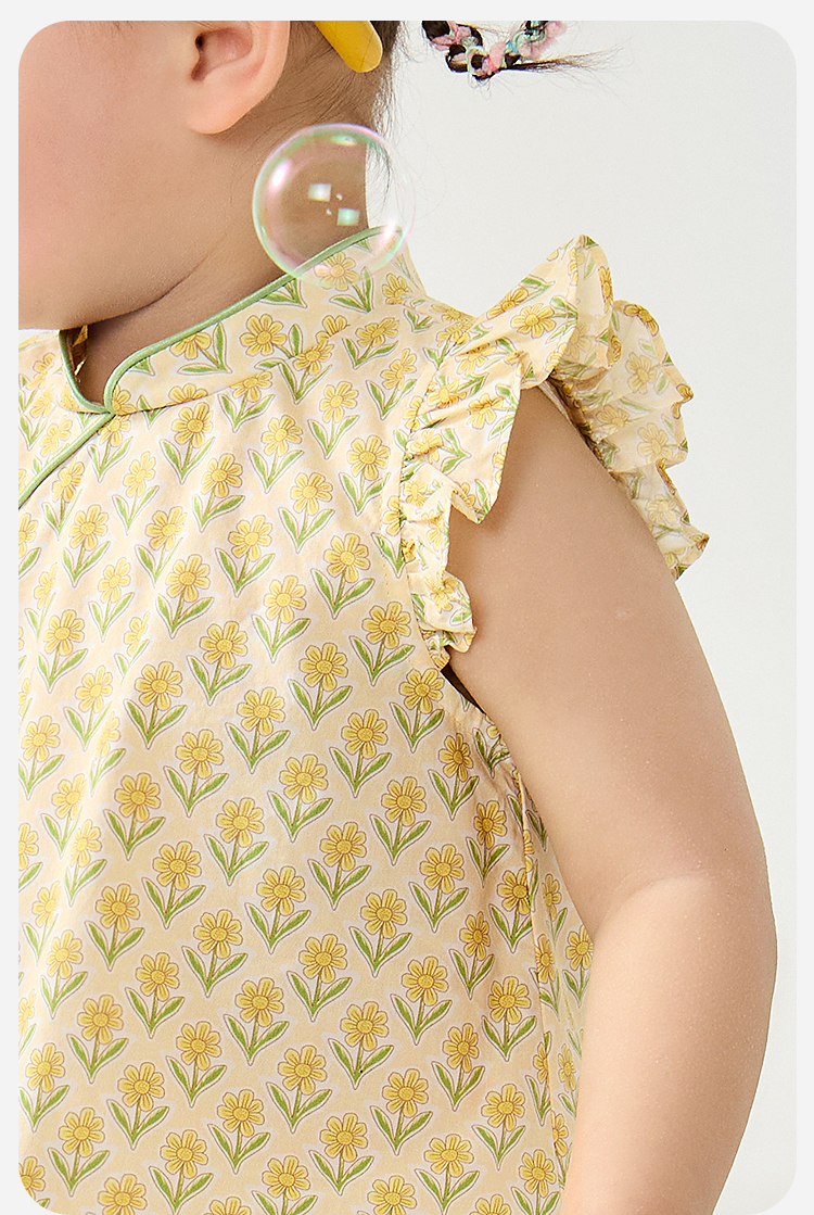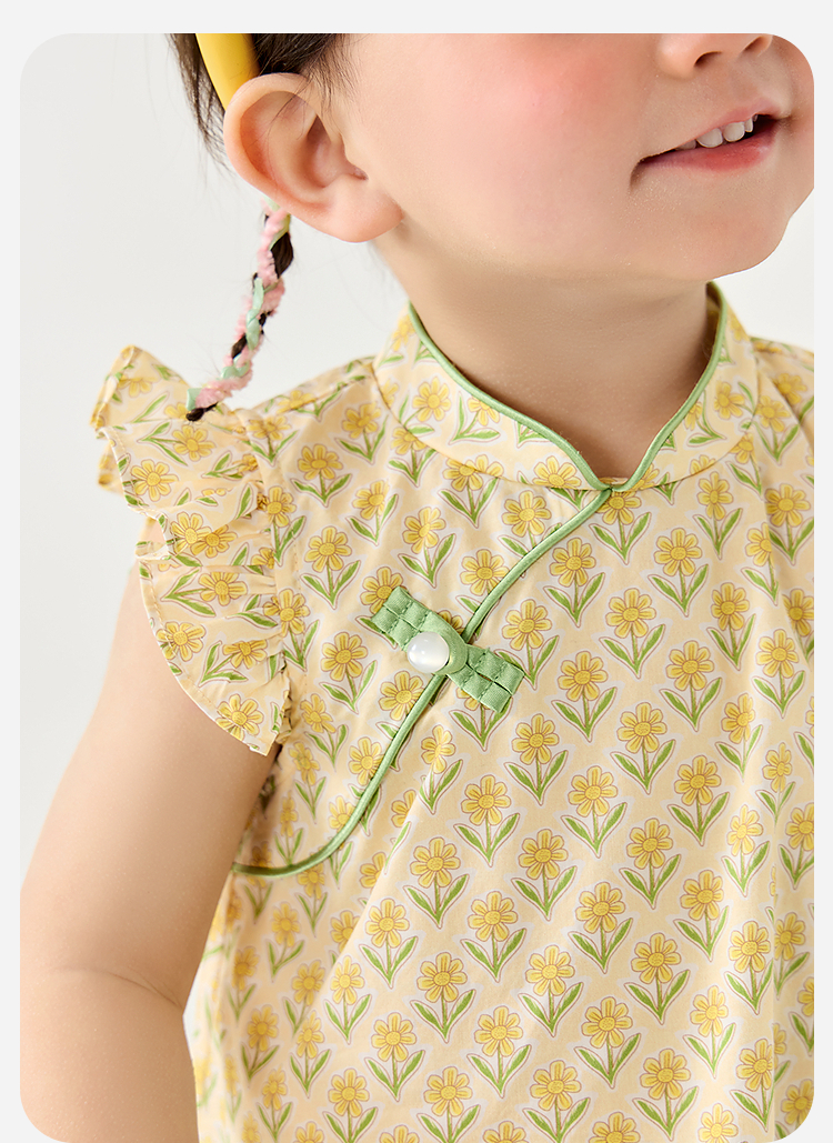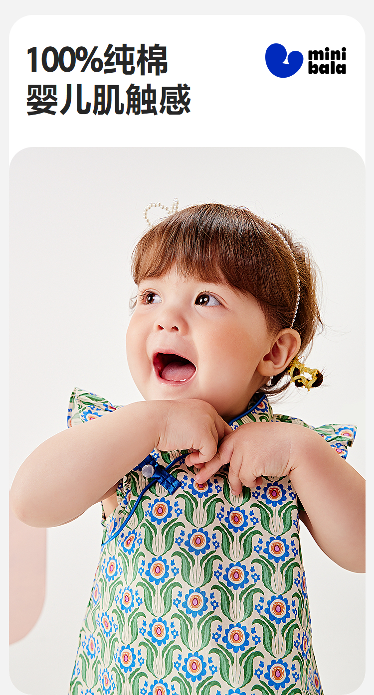 【纯棉】迷你巴拉新中式连衣女童宝宝不易变形飞袖旗袍裙亲肤