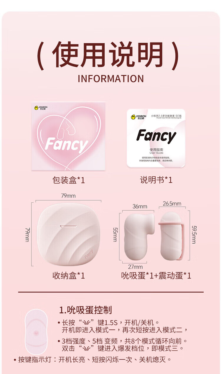 杰士邦JISSBON入体迷你超小蓝牙无线弹女性强震成人 杰士邦Fancy系列小粉饼2.0多功能跳蛋 SE版