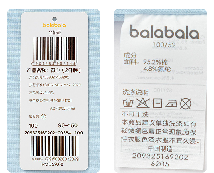 巴拉巴拉宝宝背心秋季新品女童吊带男童打底睡衣儿童小内衣两件装