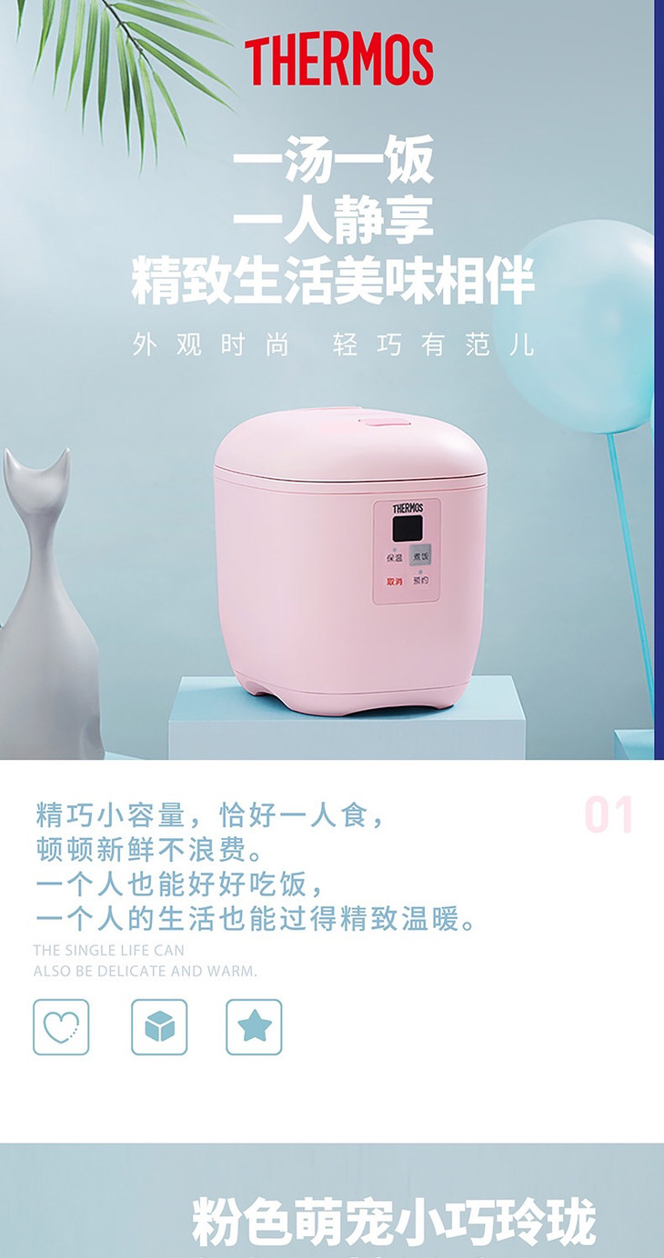 膳魔师 0.8L粉色迷你电饭煲电饭锅+400ml真空不锈钢保温杯套装EHA-4101E-TZ/EHA-4101E-Z