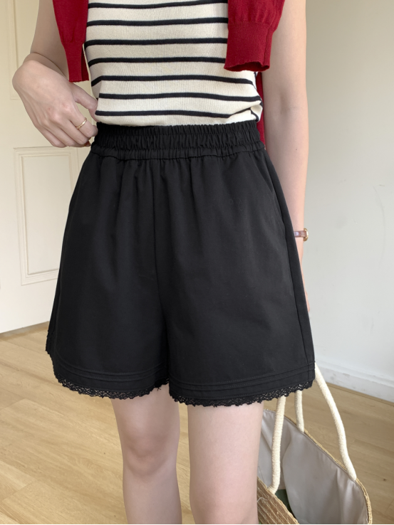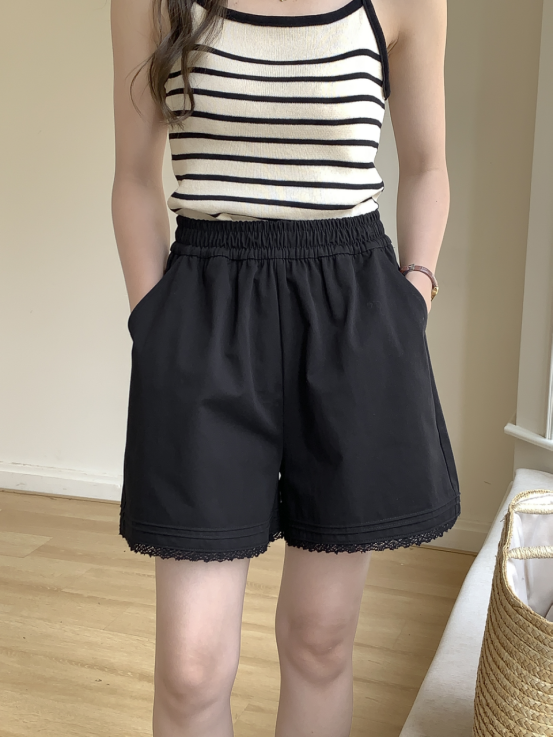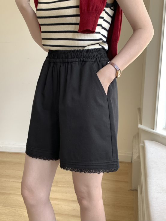 甜美,夏日短裤首选! 蕾丝拼接高腰短裤,简约又不失设计感,遮肉显瘦超友好! ✔ 轻盈透气不粘腻,随意搭配都很出片!白色清新,黑色高级,你Pick哪一款?💖