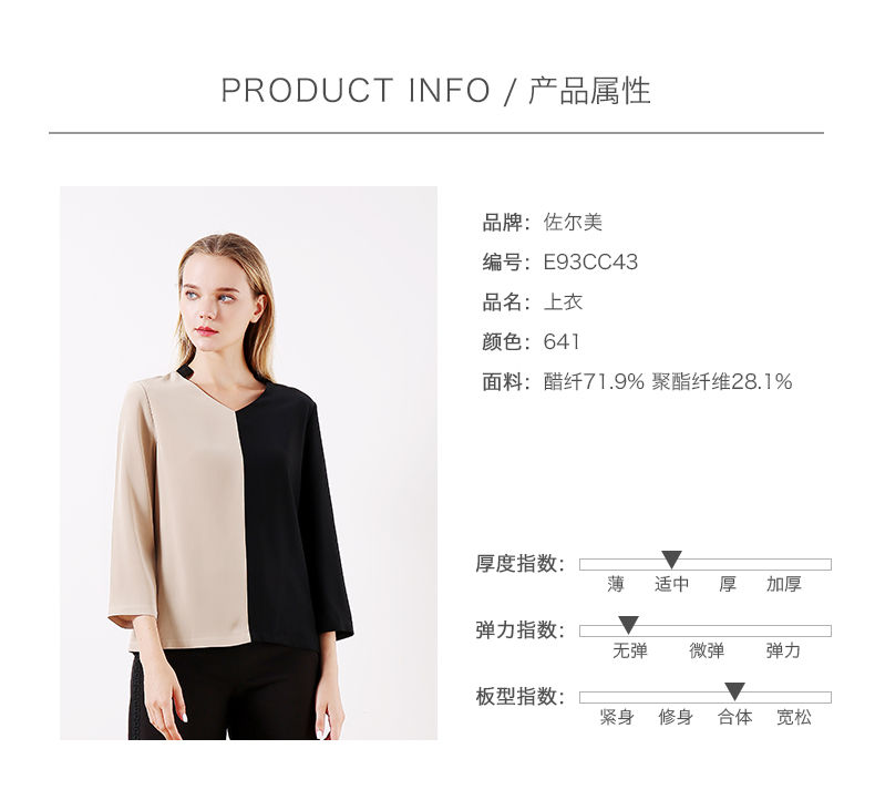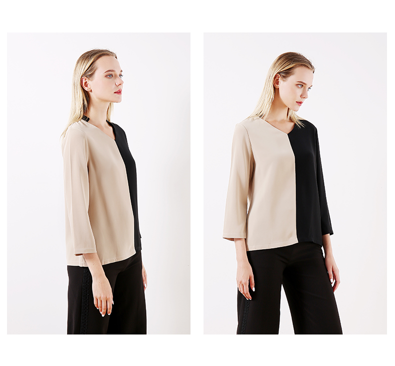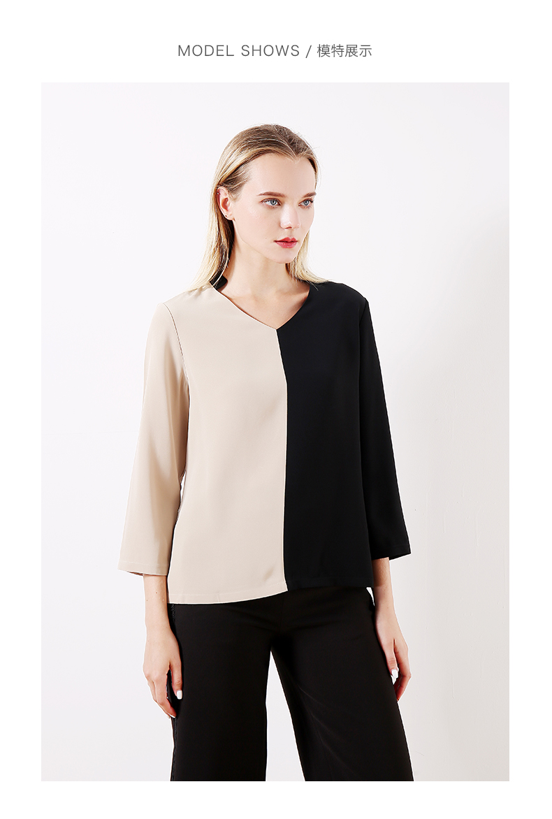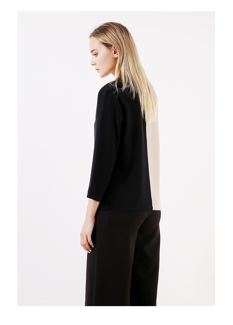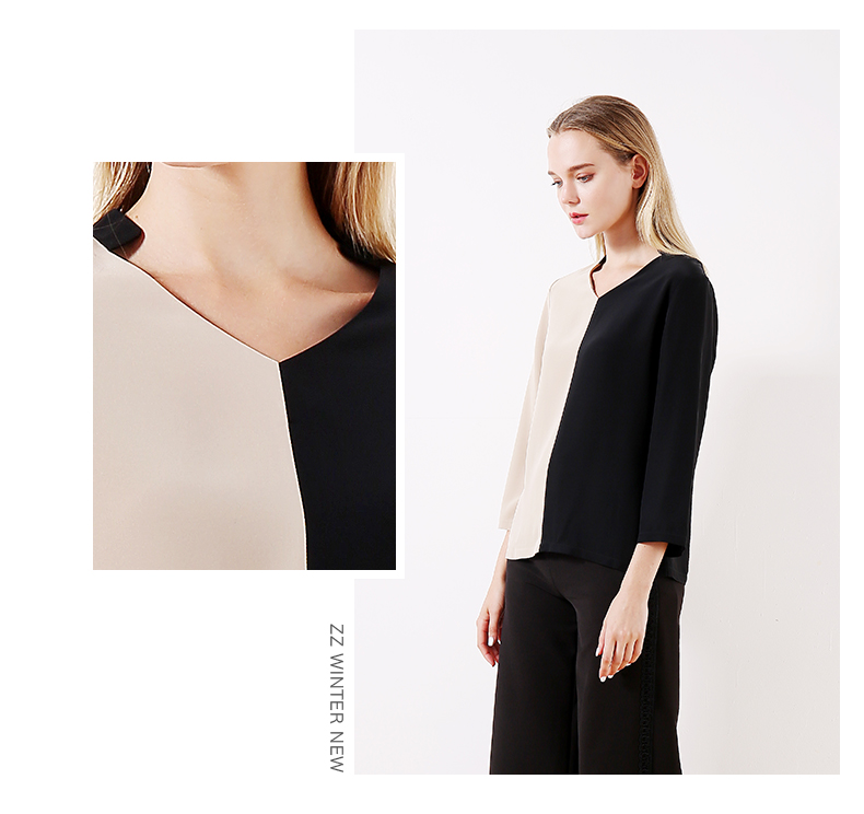 佐尔美早春季新款拼色直筒宽松气质V领长袖衬衫E93CC43