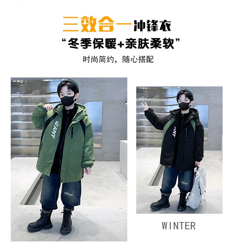 儿童装男童外套加绒加厚2025新款中大童男孩冲锋衣三合一秋冬装潮