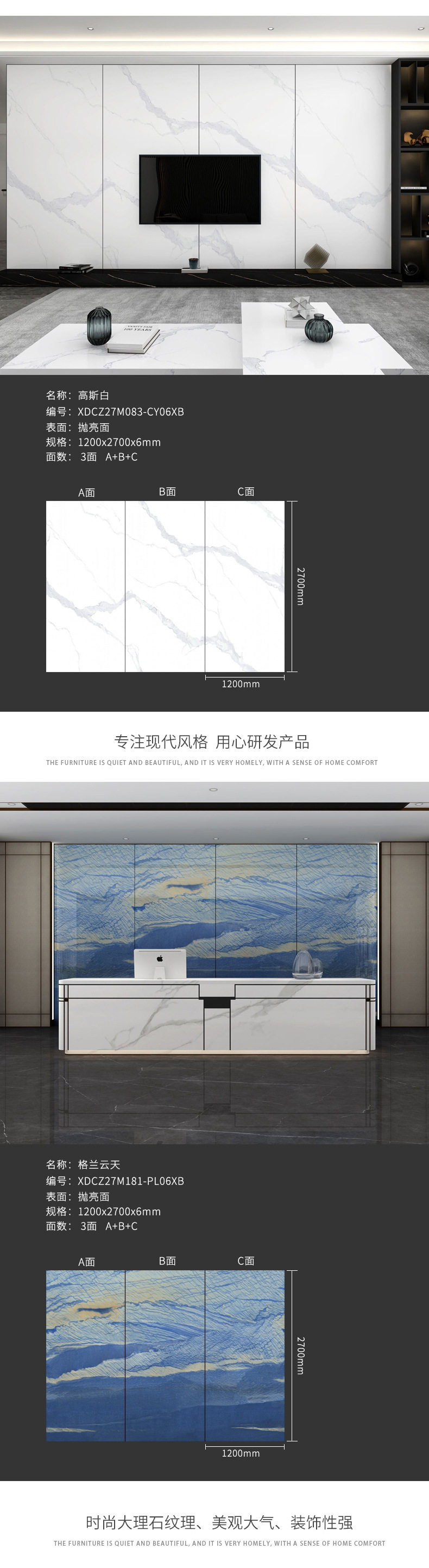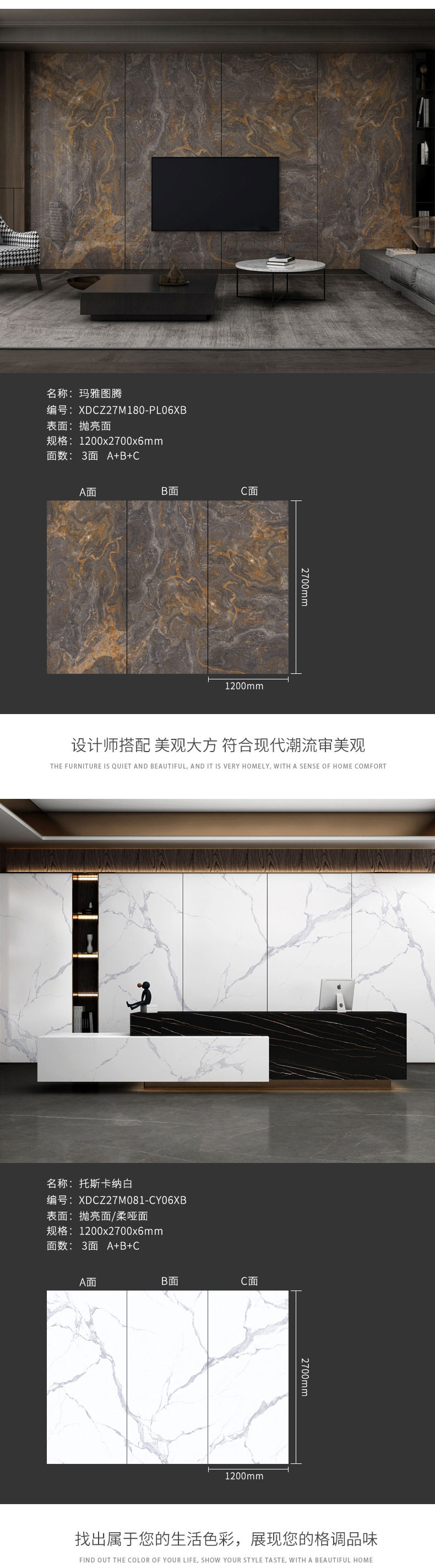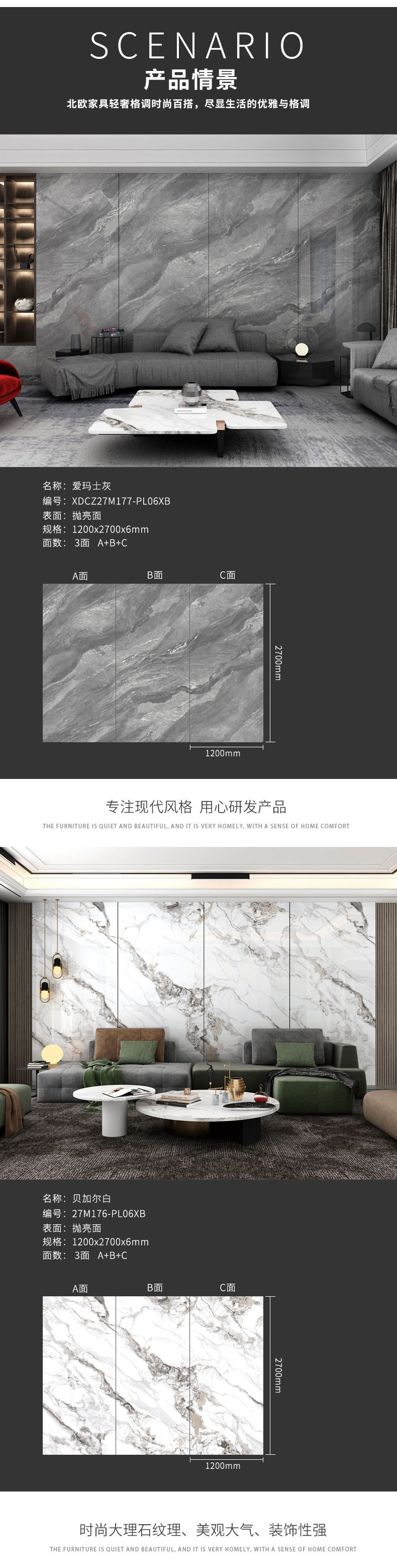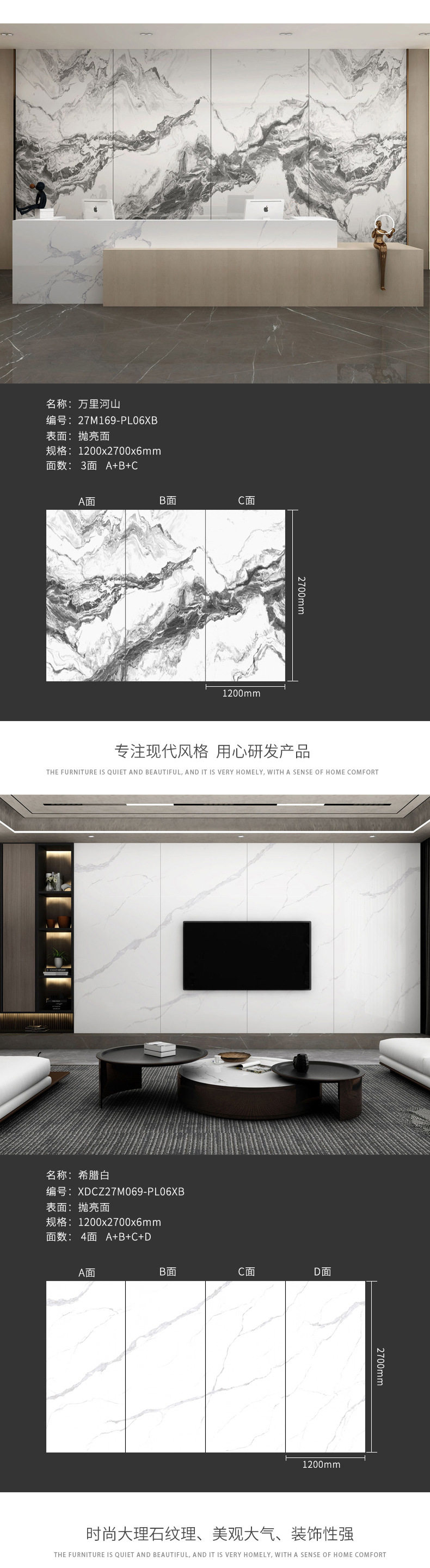 1200大连纹别墅岩板现代2700通体*工厂佛上背景墙瓷砖6规格*大板 商品图3