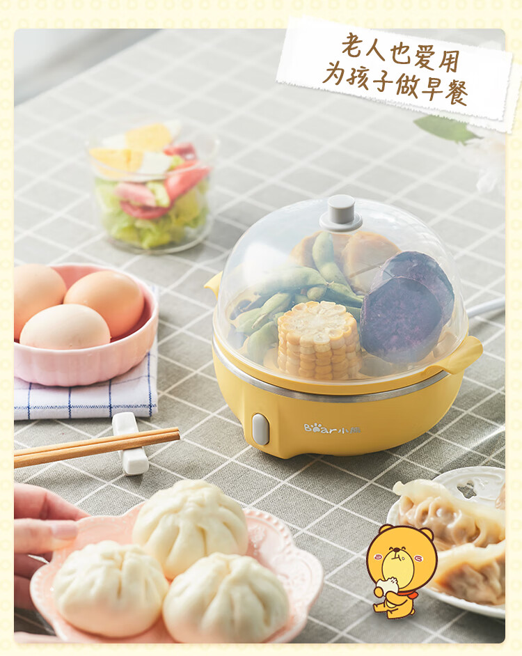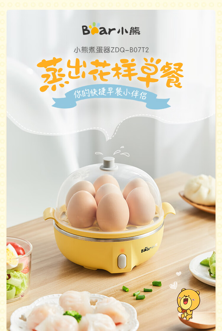 小熊(Bear) 煮蛋器 双层定时蒸蛋器全不锈钢自动断电14个蛋早餐 ZDQ-B07T2