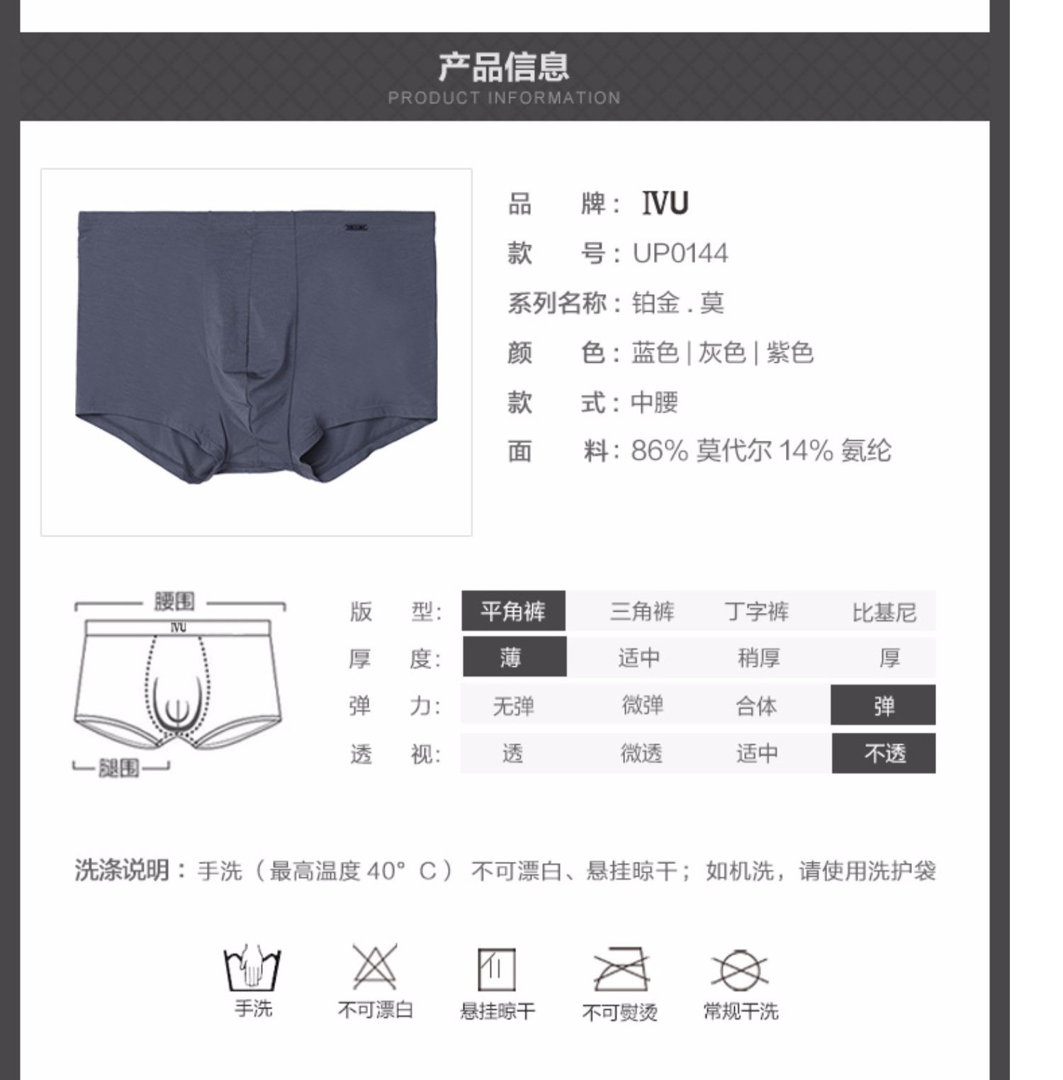 6F IVU男士莫代尔抗菌内裤薄款舒适纯色中腰平角裤