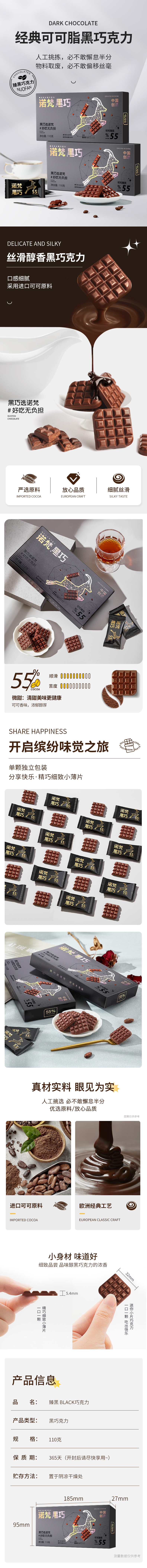 【会员专享】诺梵55%每日纯黑巧克力礼盒装可可脂散装纯脂休闲烘焙零食送女友
