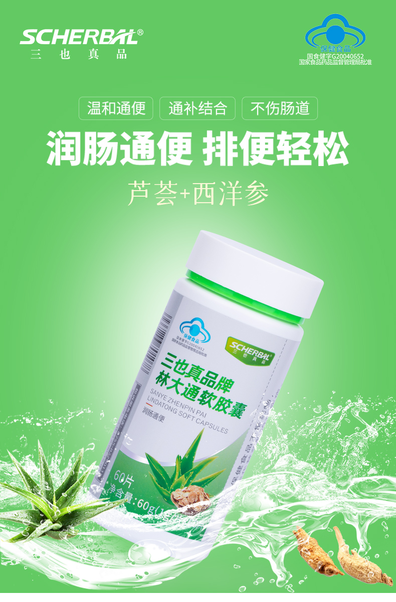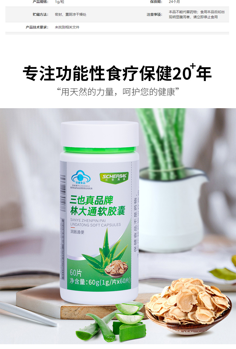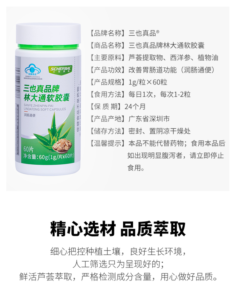 三也真品林大通软胶囊 1g/粒*60粒 改善胃肠道功能(润肠通便)