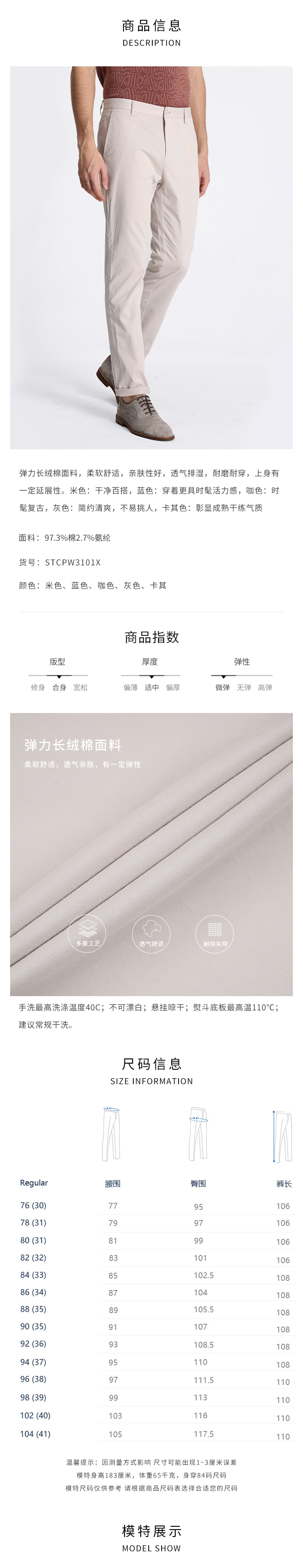 callisto卡其色弹力长绒棉休闲裤 STCPW3101X