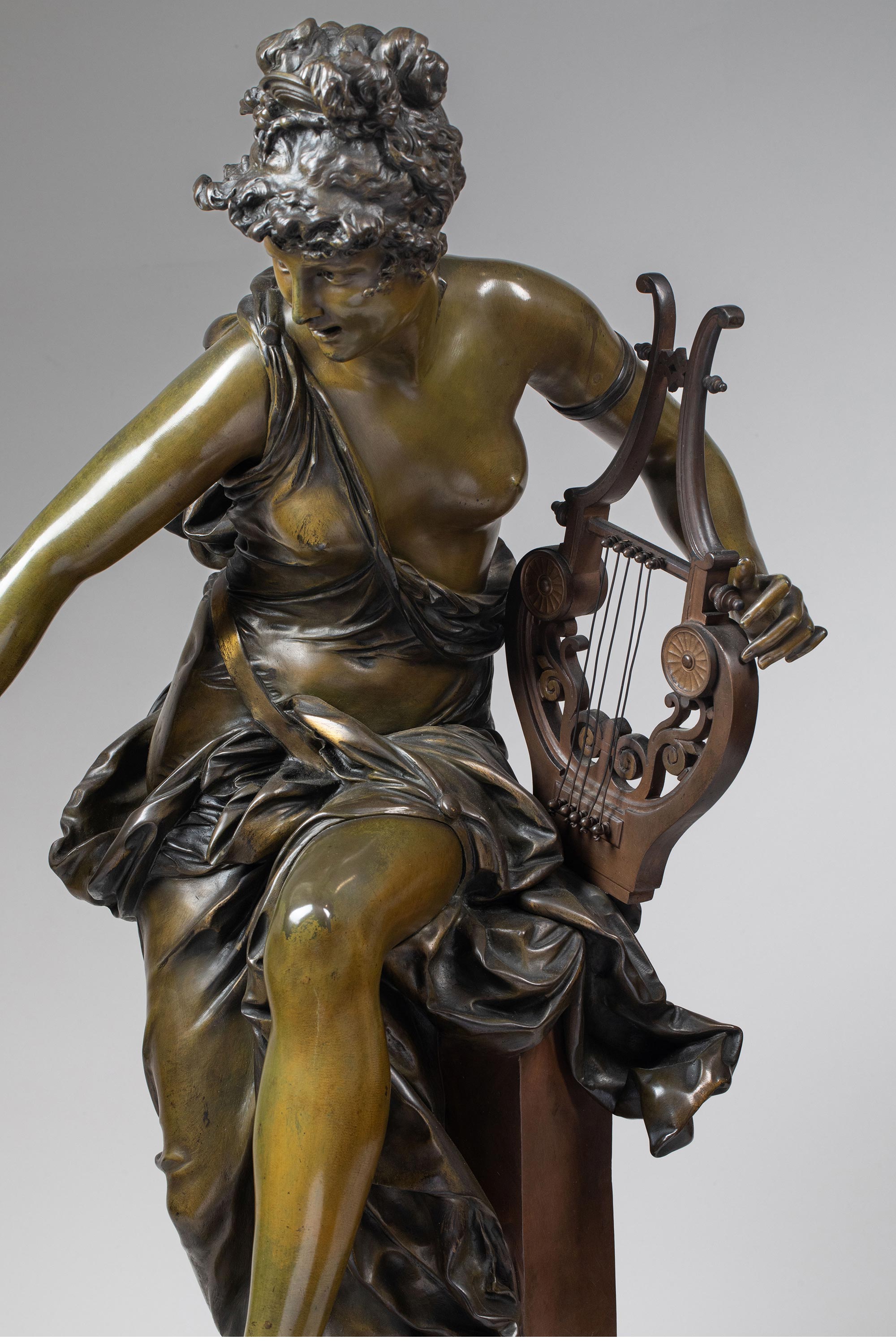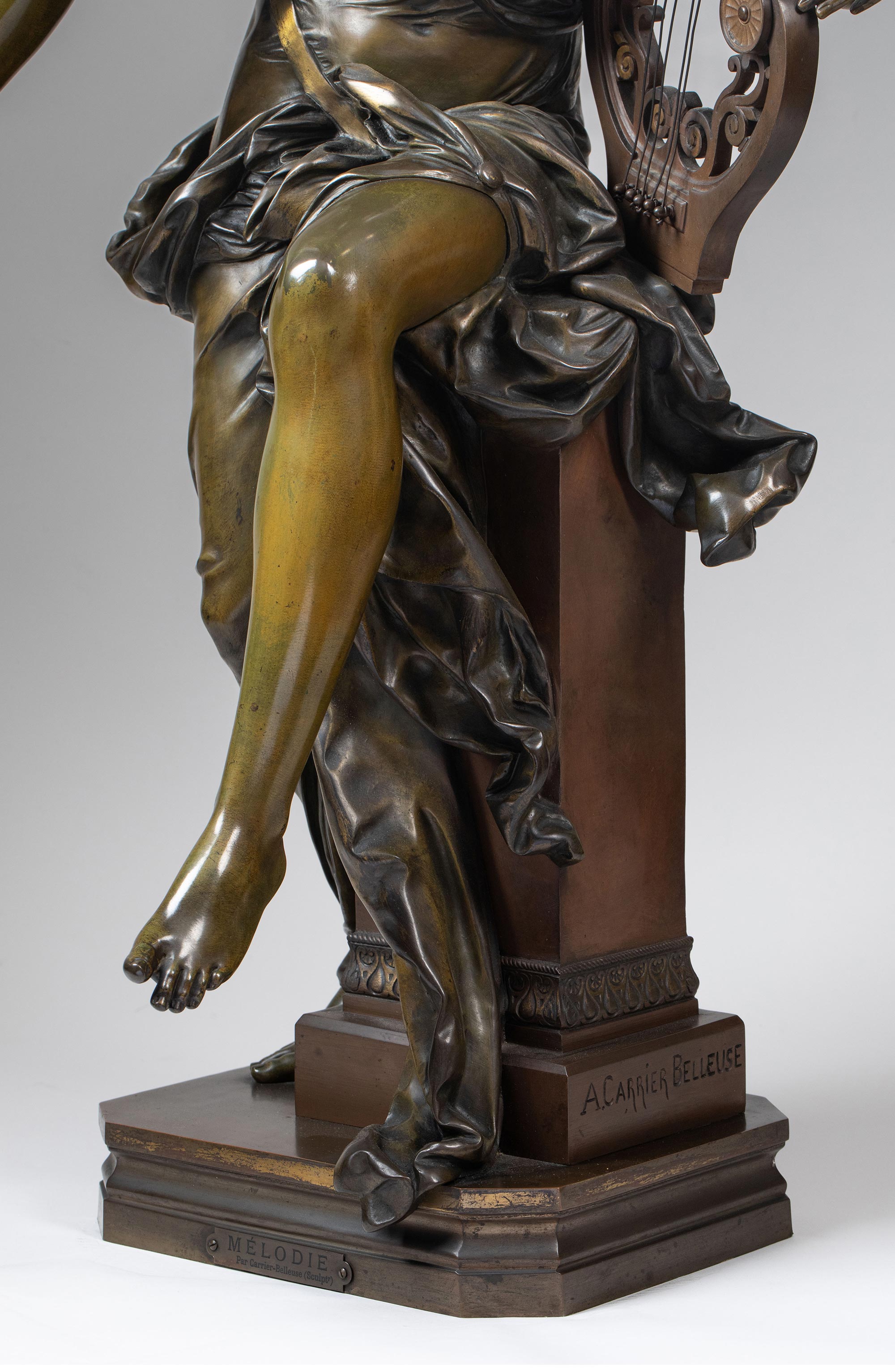 19世纪中期法国雕塑名家Albert Ernest Carrier Belleuse设计出品青铜人物雕塑《旋律》