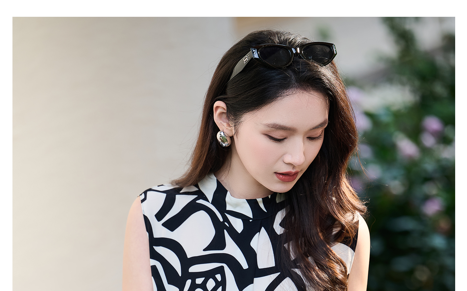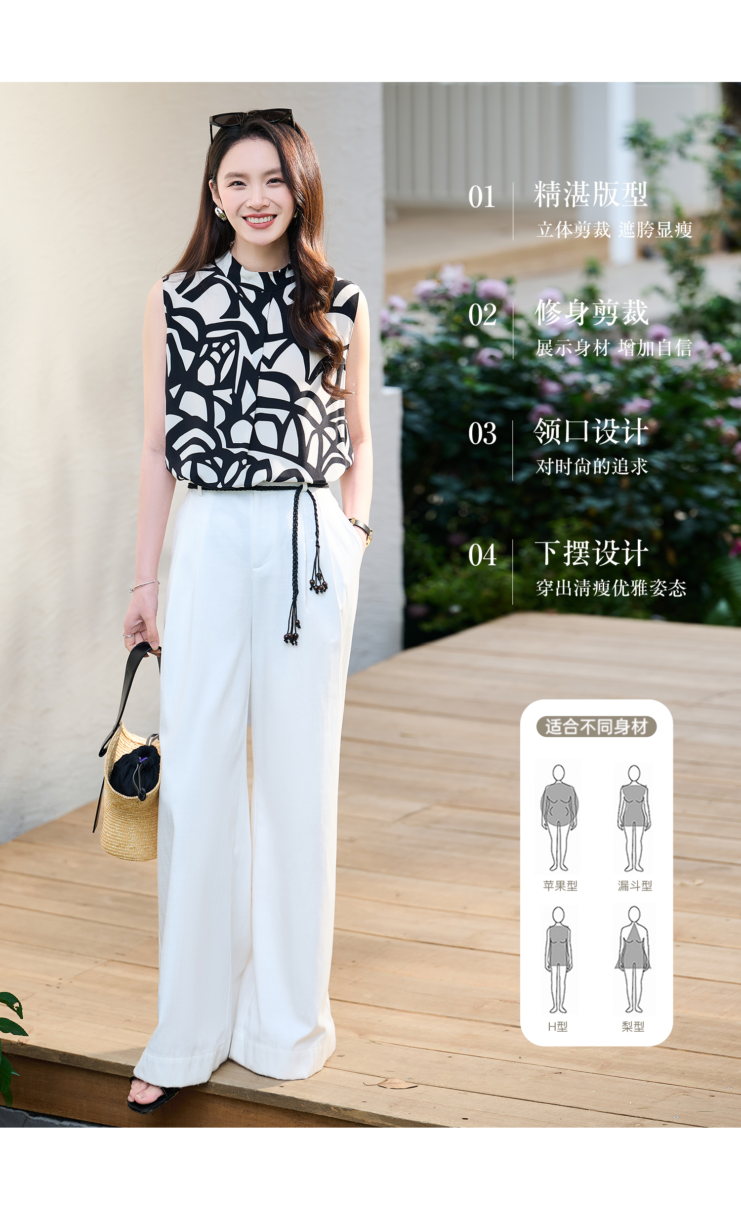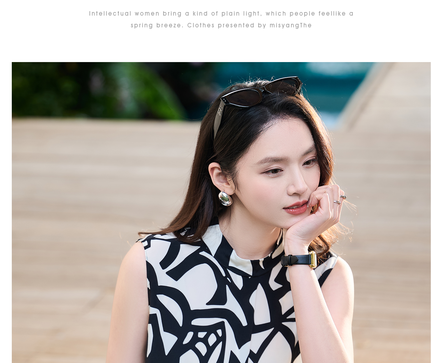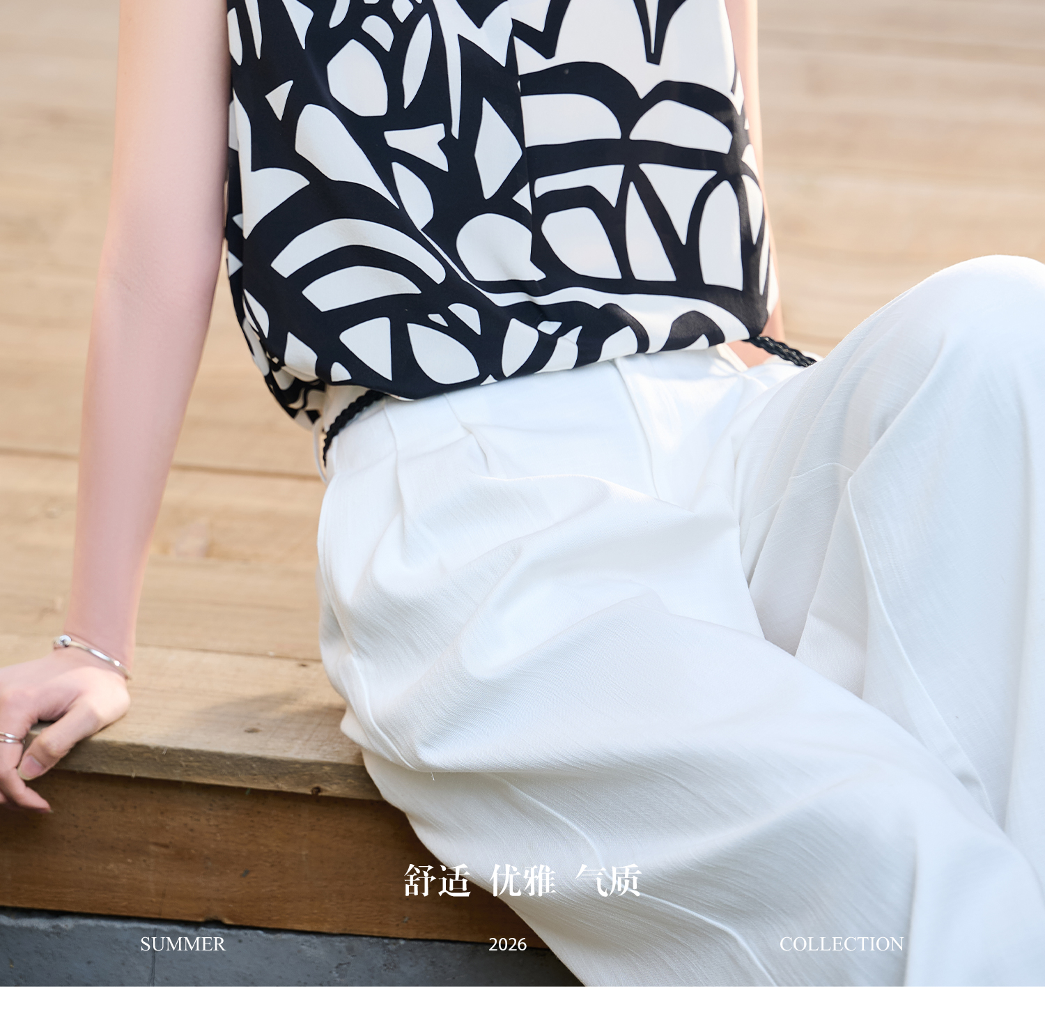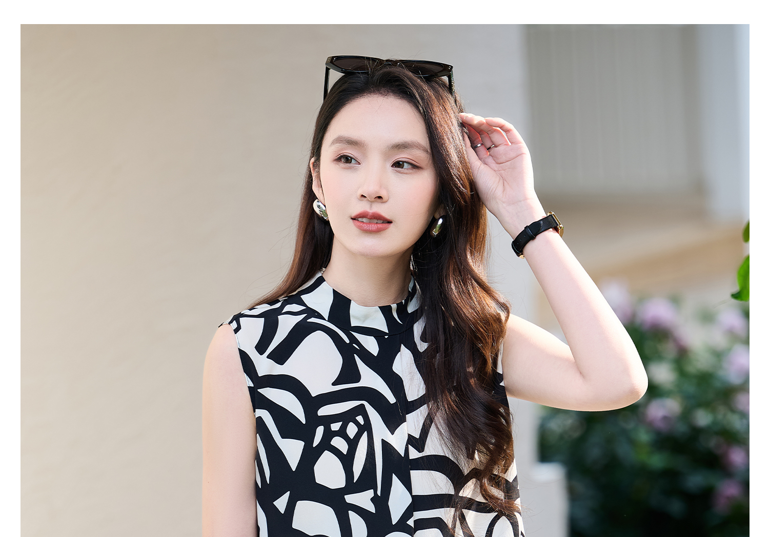 米思阳2026夏季新款轻奢高级感黑白印花背心女夏季无袖衬衫小衫百搭上衣女1043