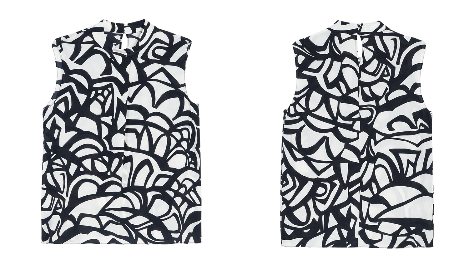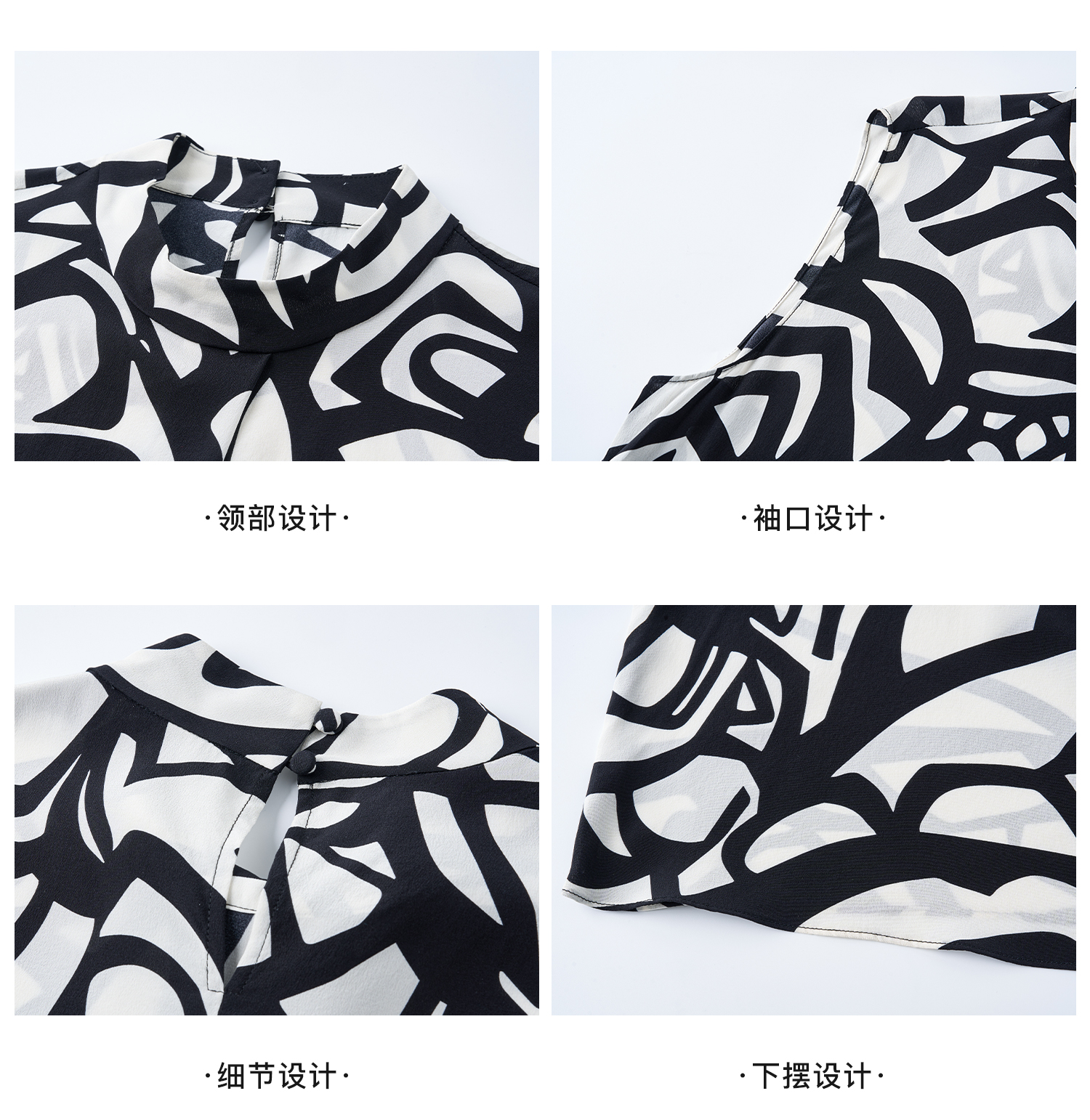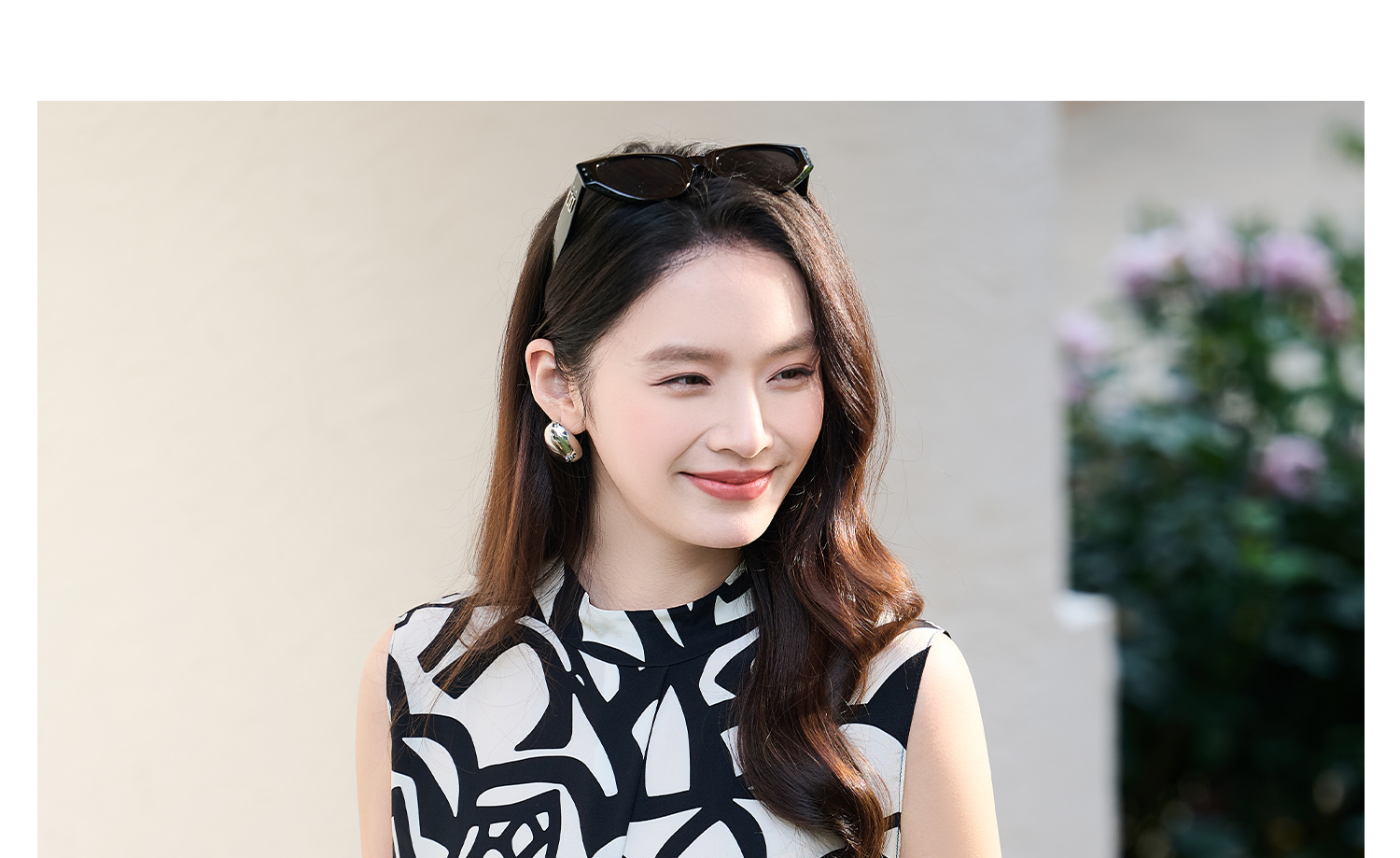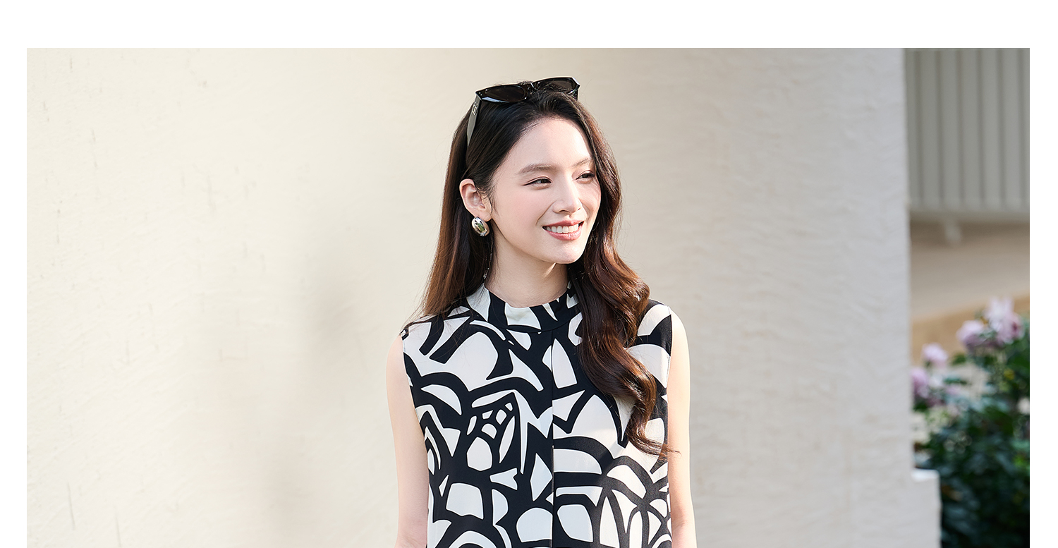 米思阳2026夏季新款轻奢高级感黑白印花背心女夏季无袖衬衫小衫百搭上衣女1043