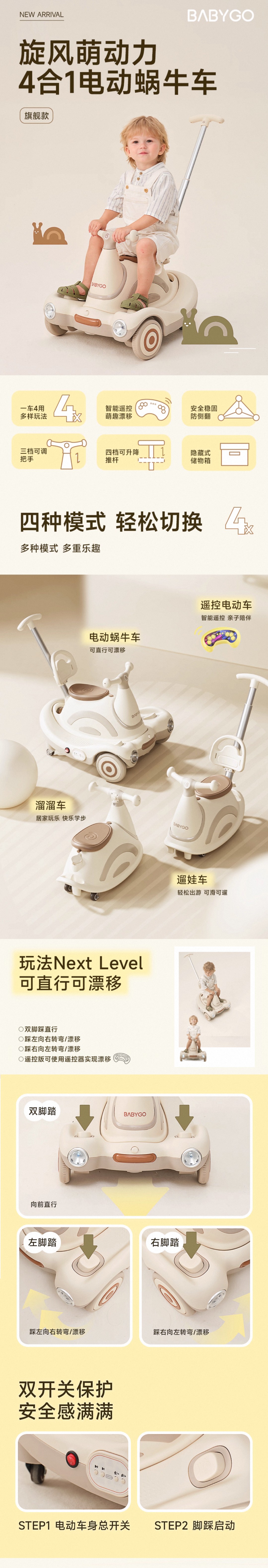 BABYGO 遥控电动蜗牛车(4合1)