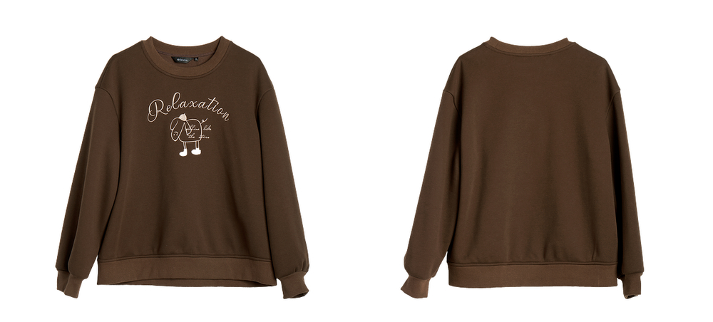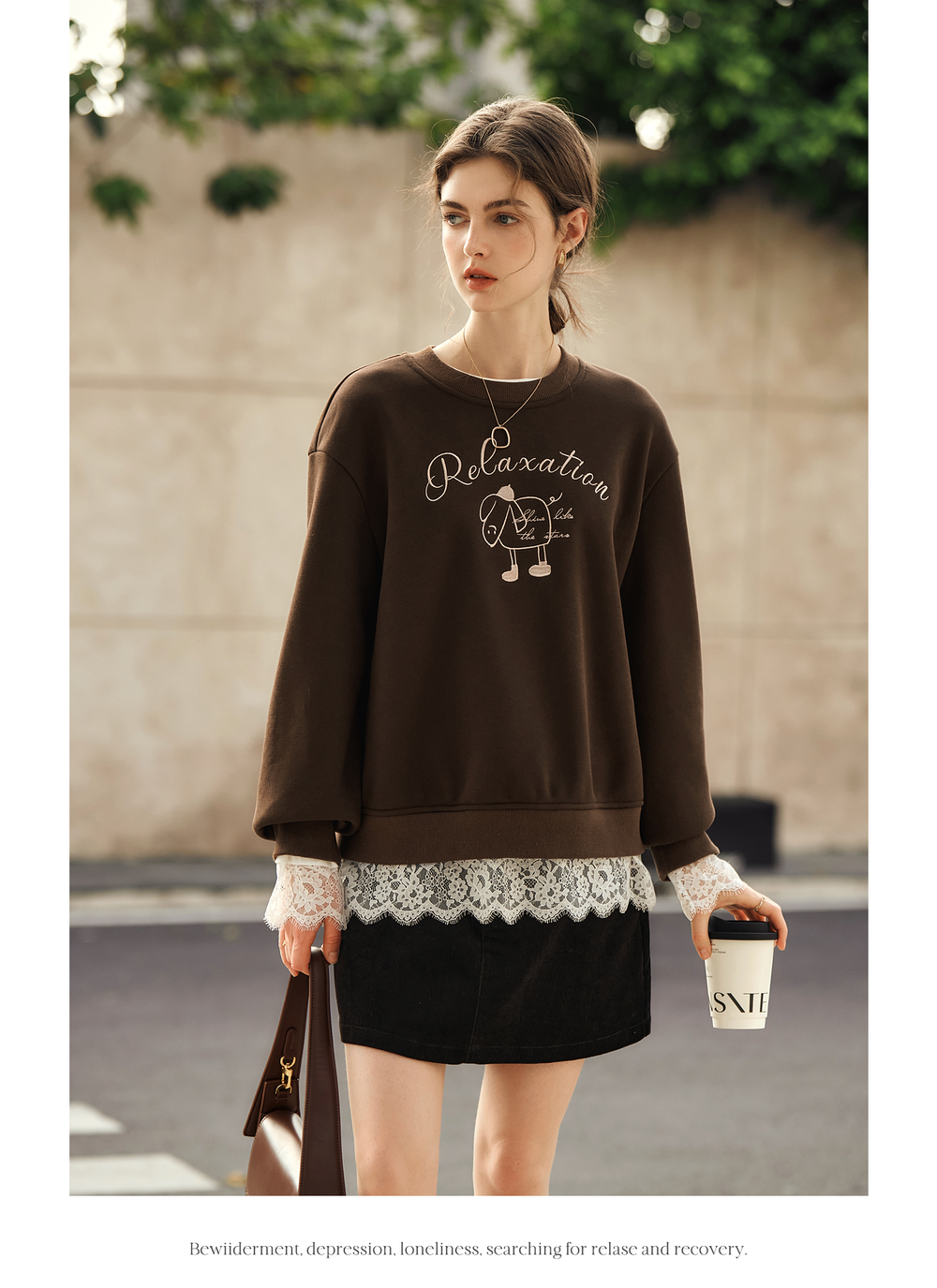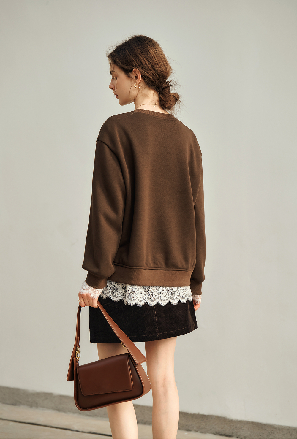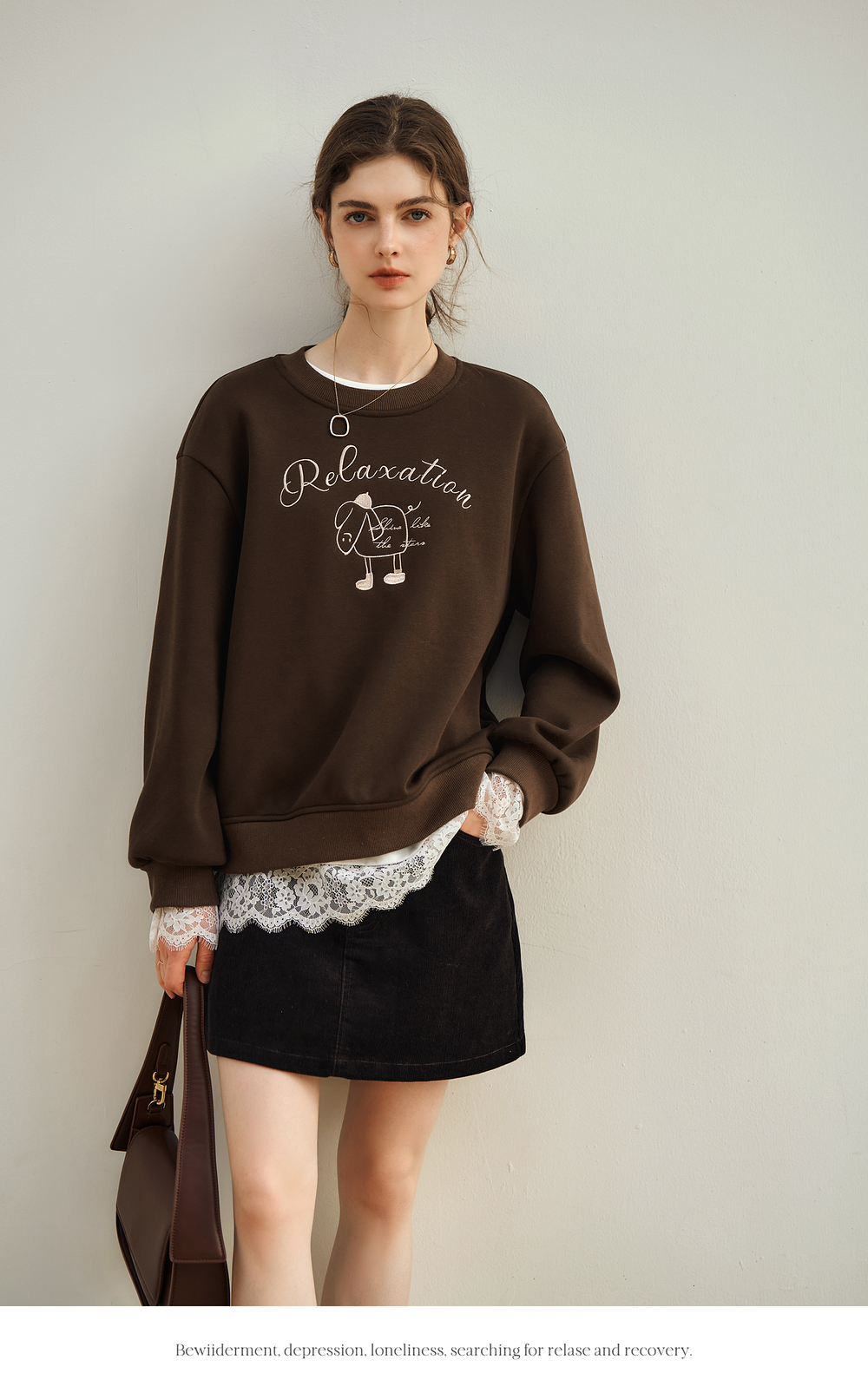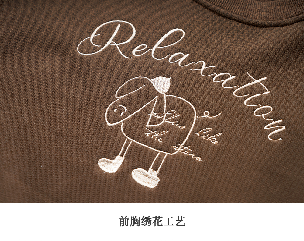 OLrain欧芮儿摩卡色加绒卫衣女冬季2024年新款休闲绣花套头衫