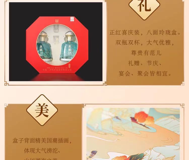 [泸州老窖-原酿天典饮山河]52度-浓香型白酒2瓶礼盒装过节送礼用酒特价