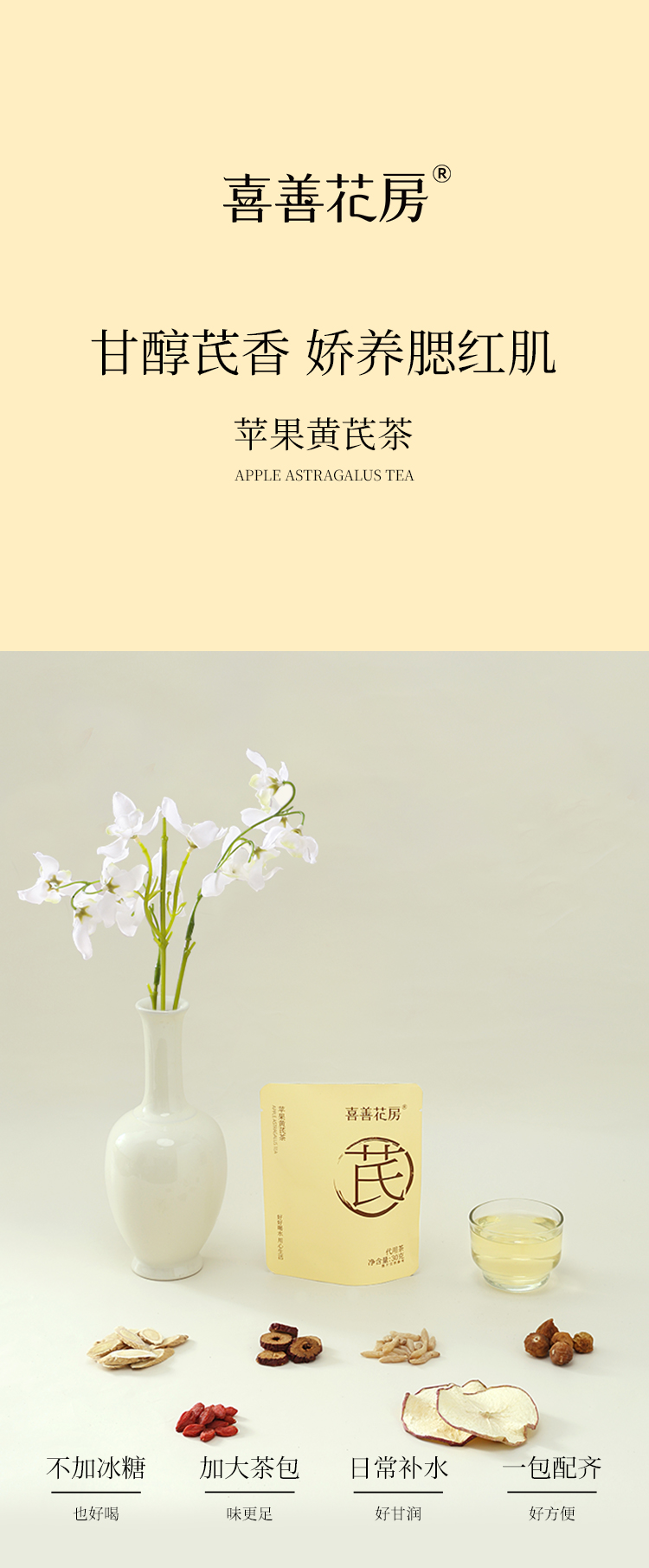 喜善花房 三款口味组合装 竹蔗茅根茶 小吊梨汤 苹果黄芪茶 润燥茶 0添加剂 全家爱喝【鱼圈vip福利】