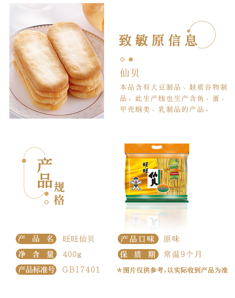旺旺 仙贝 零食 膨化食品 饼干糕点 家庭装 400g
