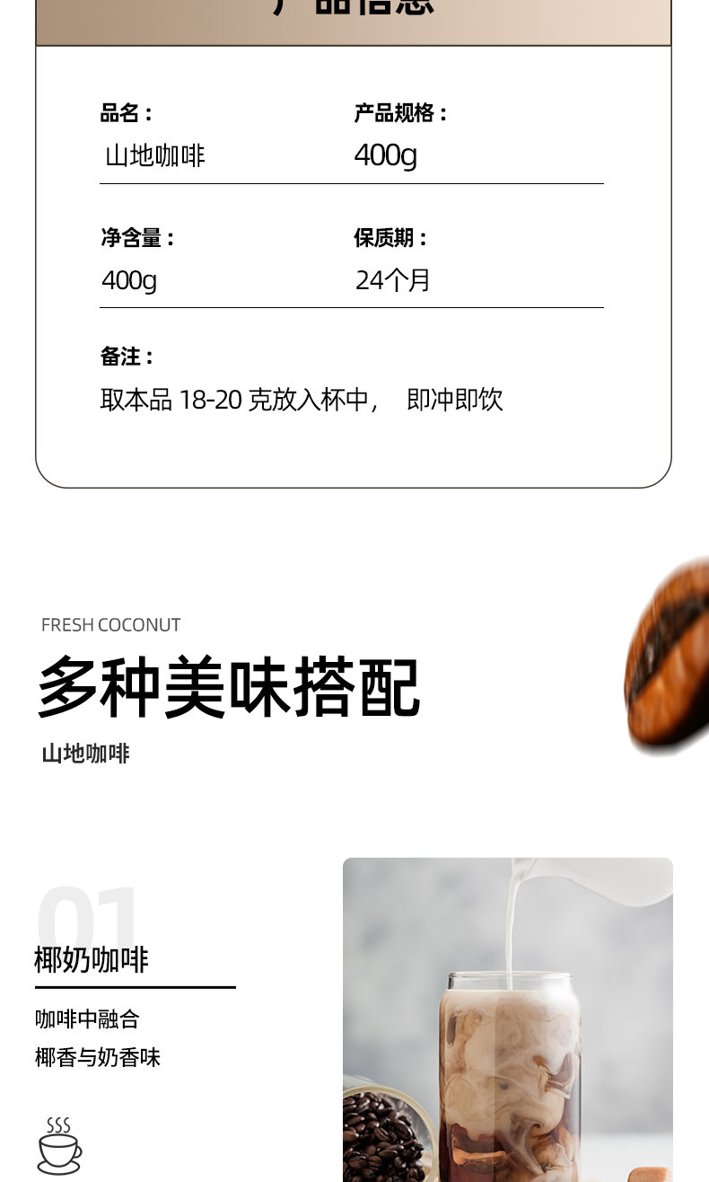 山地咖啡400g罐装 冲调速溶咖啡粉