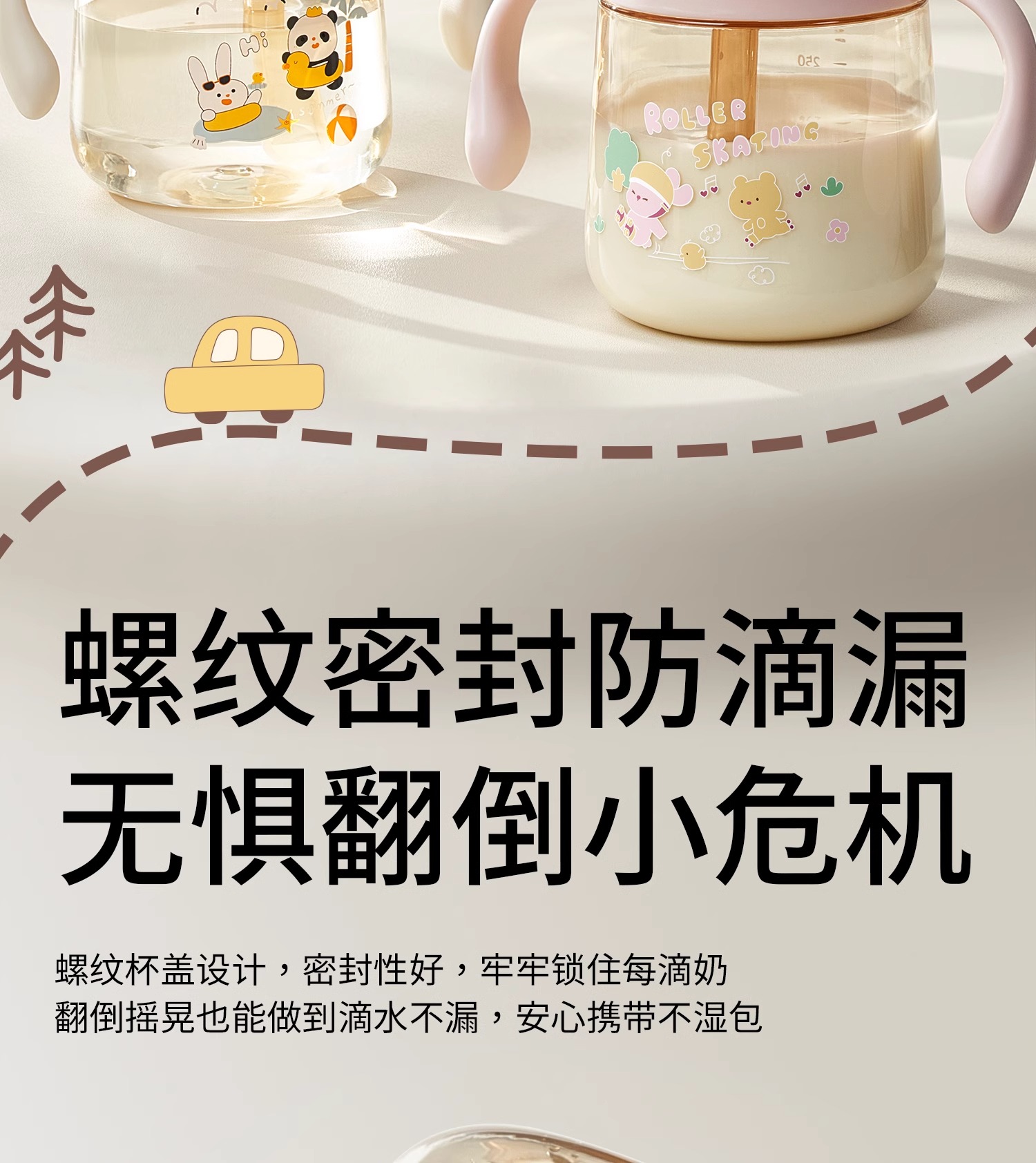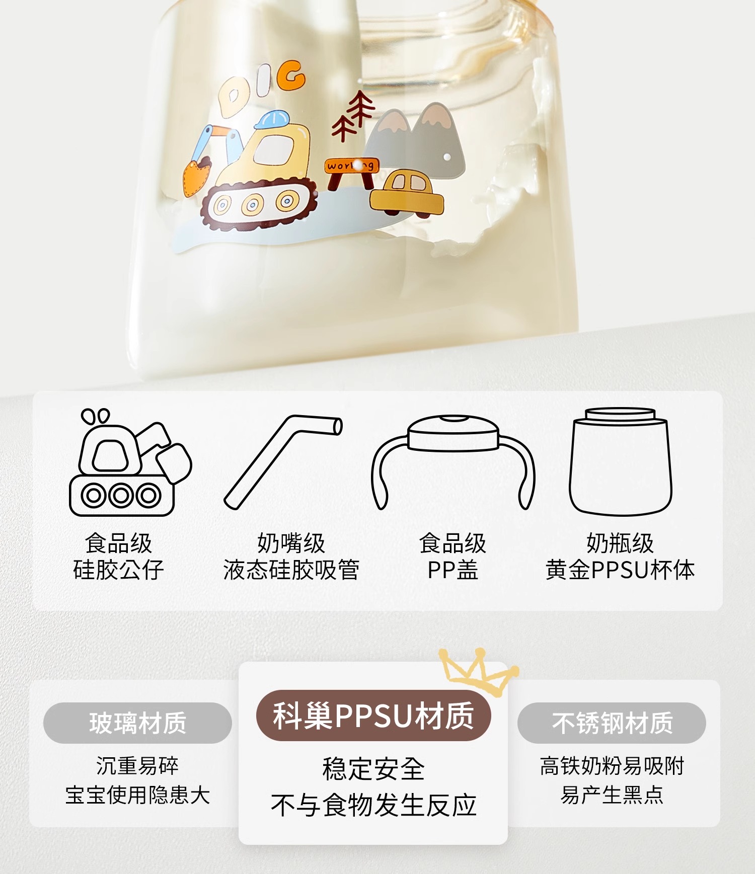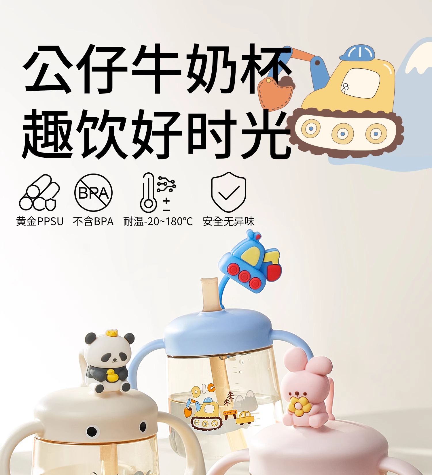 科巢儿童牛奶刻度杯喝酸奶粉燕麦杯吸管豆浆杯便携外带微波炉加热