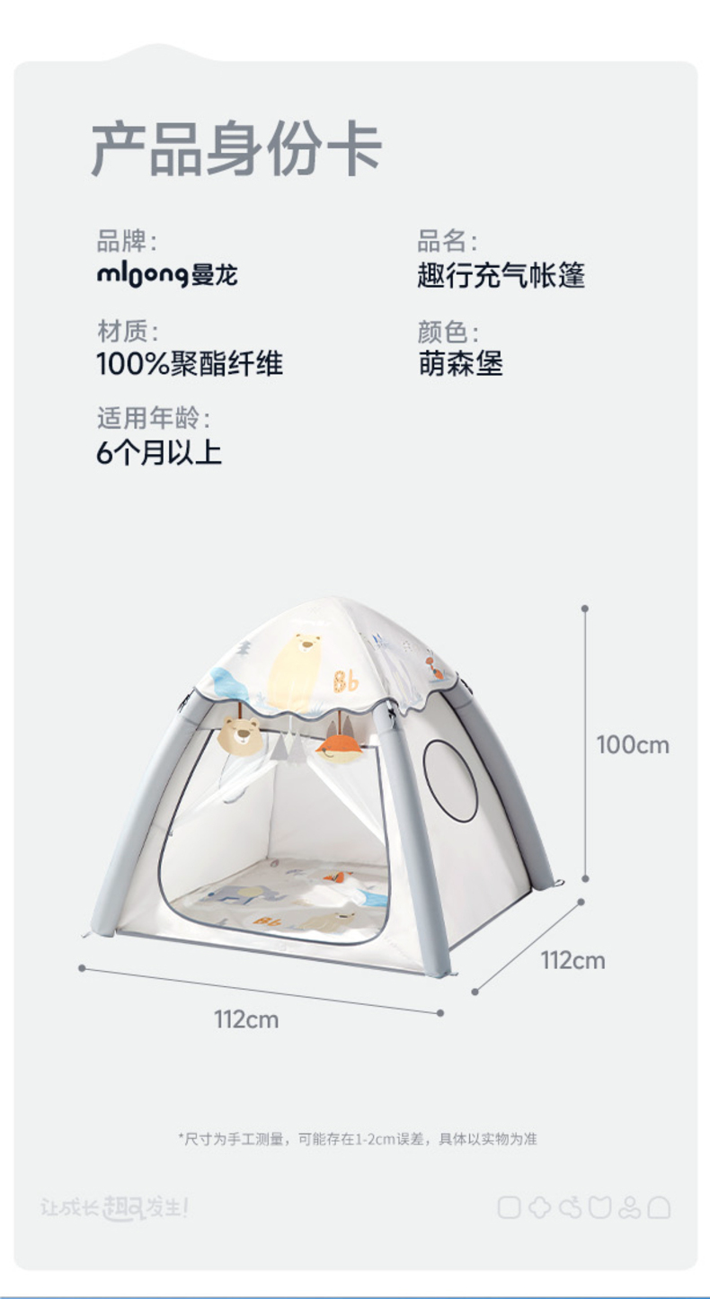 【积分商城】曼龙趣行 充气帐篷 儿童室内户外便携式可折叠玩具屋 小房子