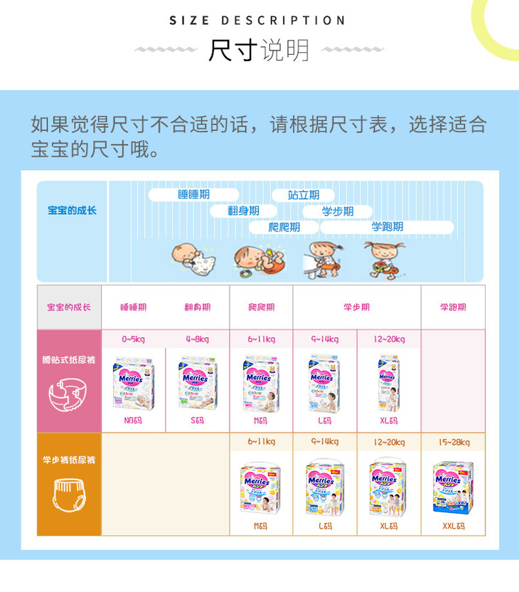 日本花王妙而舒Merries进口婴儿纸尿裤 拉拉裤 单包 有效期至2021年