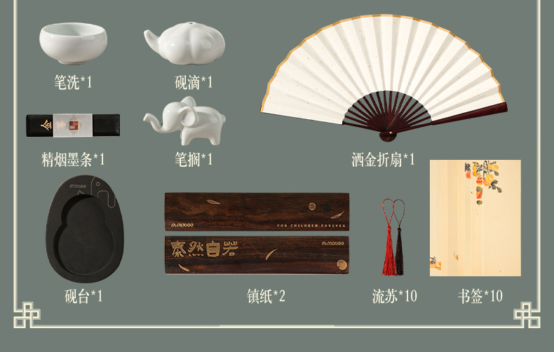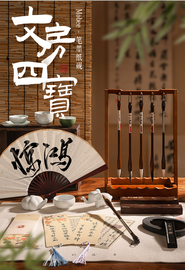 【文房四宝-笔墨纸砚】mobee文房四宝套装 初学者笔墨纸砚台 入门专用国画工具全套礼盒