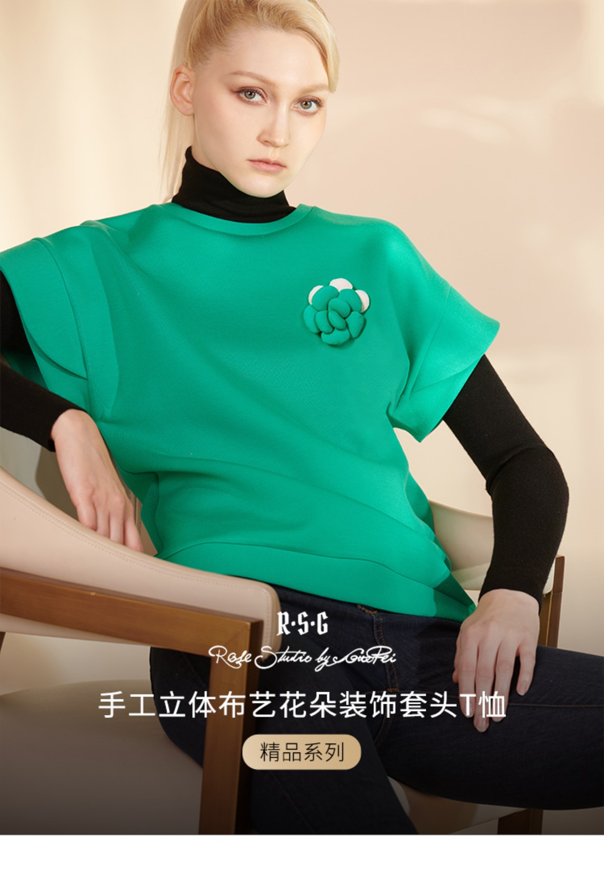 RSG郭培成衣品牌原创设计手工立体布艺花朵女装短款T恤上衣