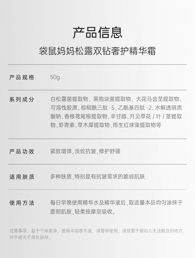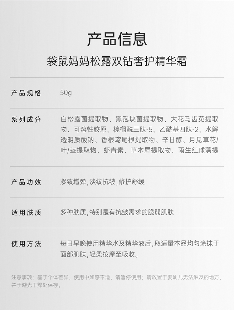 【抗皱面霜】双钻松露唤醒肌底新生能量 分区抗皱 对抗法令纹/抬头纹 饱满苹果肌 松露双钻奢护精华霜(50g)