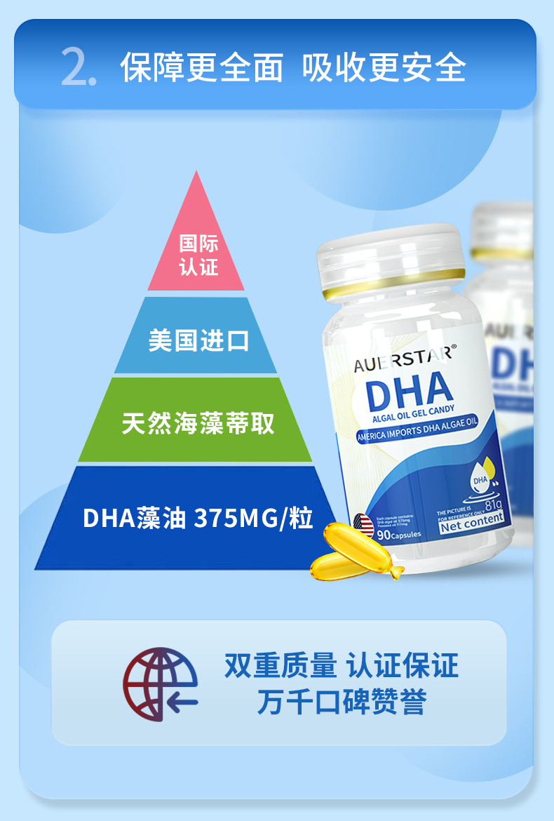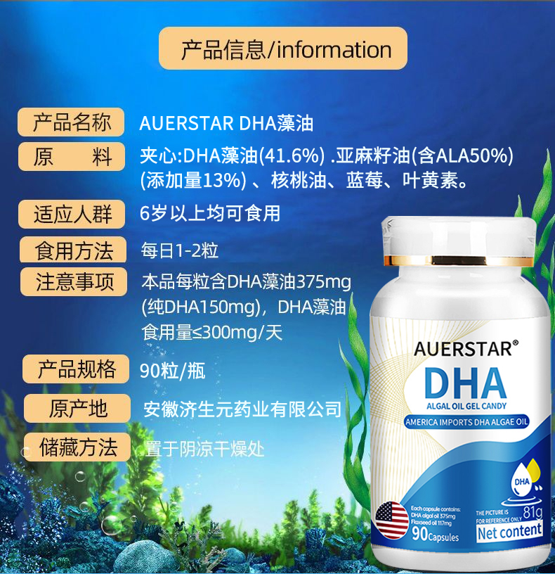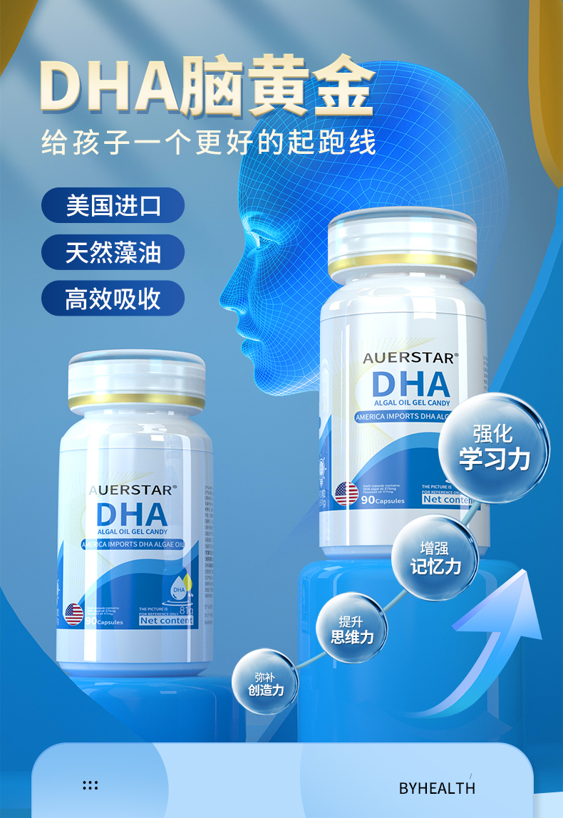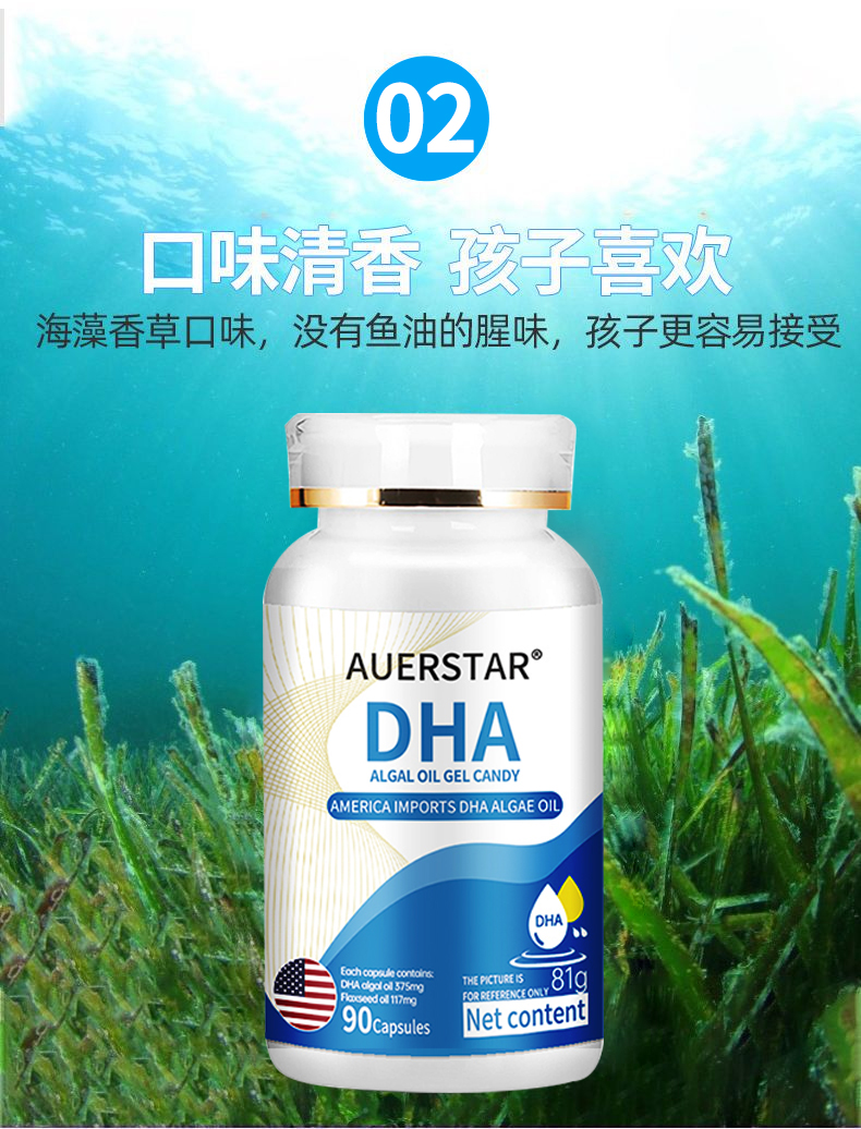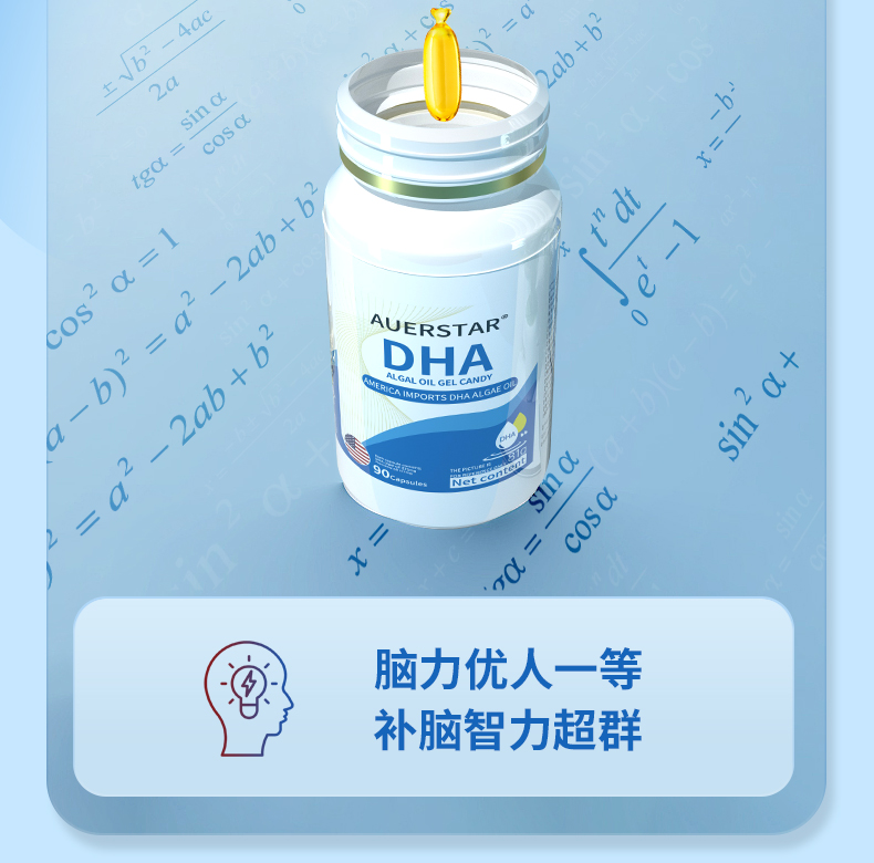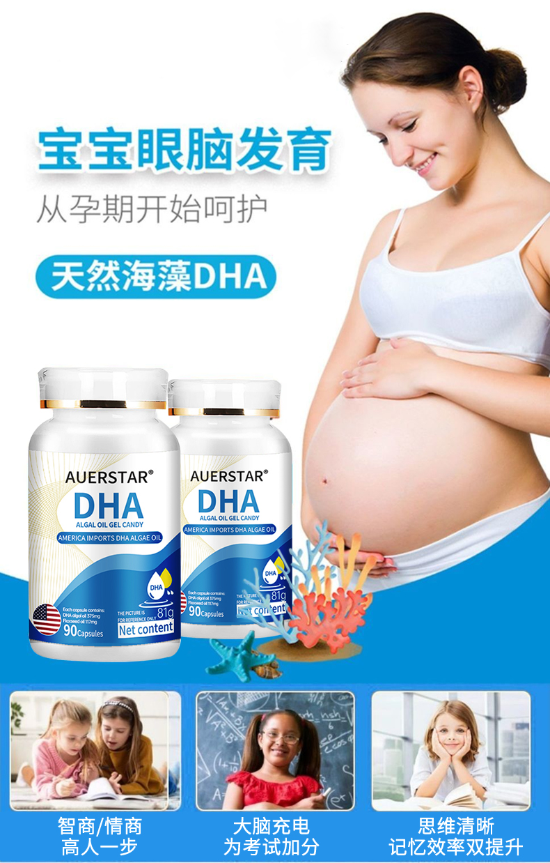 【买2送1,Auerstar进口DHA藻油胶囊】辅助促进大脑、视力发育!补脑,提高记忆力!儿童学生成人孕妇都可以吃!每粒含纯DHA150mg!一盒90粒!