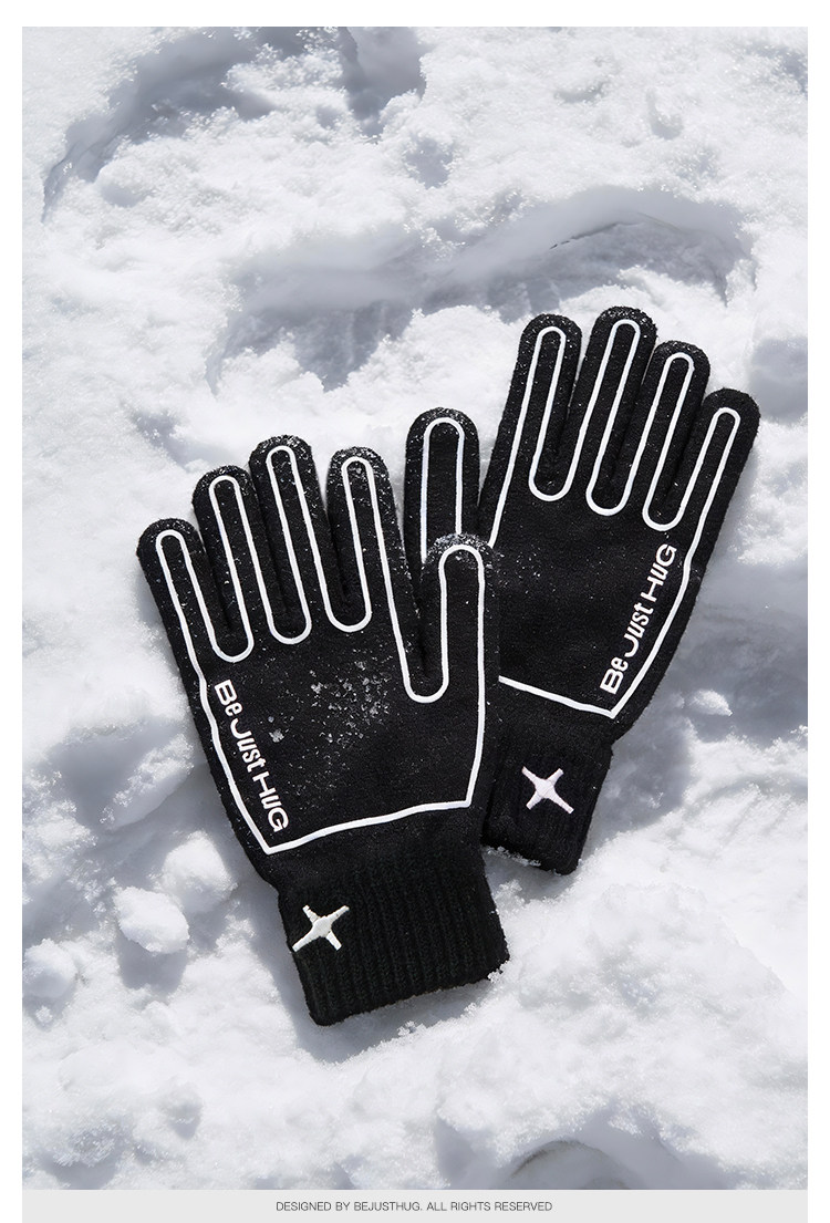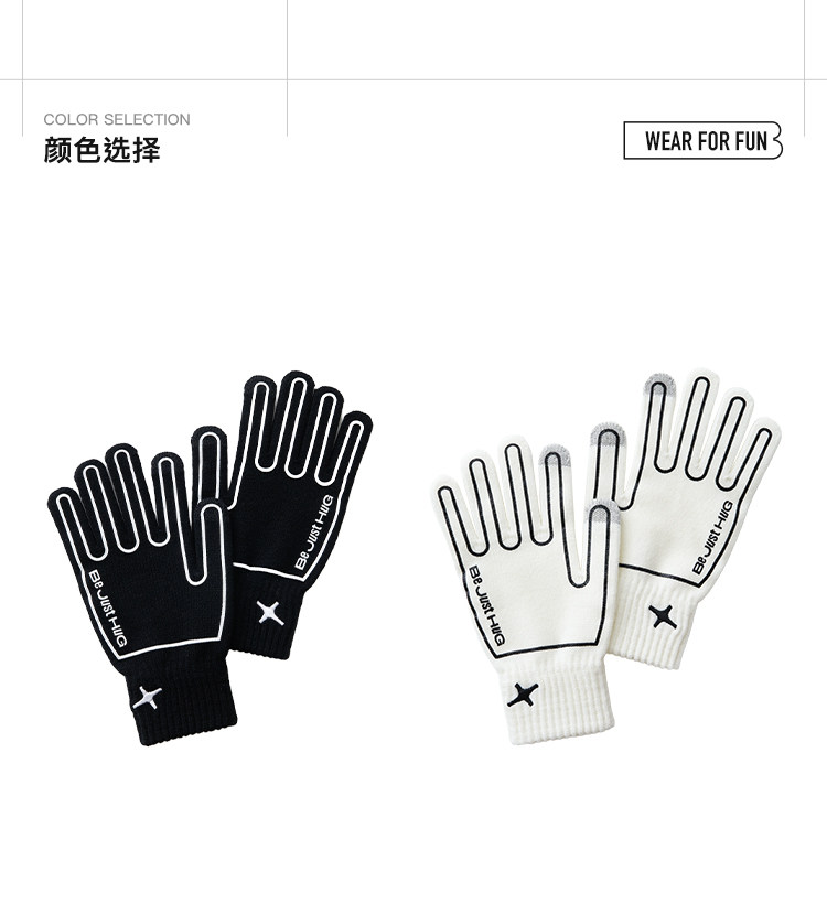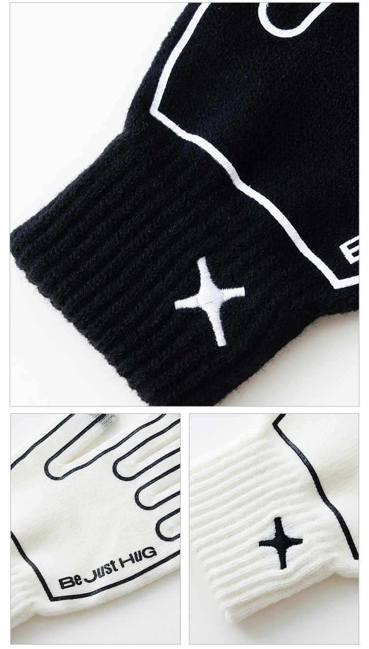 BJHG不计后果黑白撞色手套男女同款冬季新款防寒保暖百搭针织手套