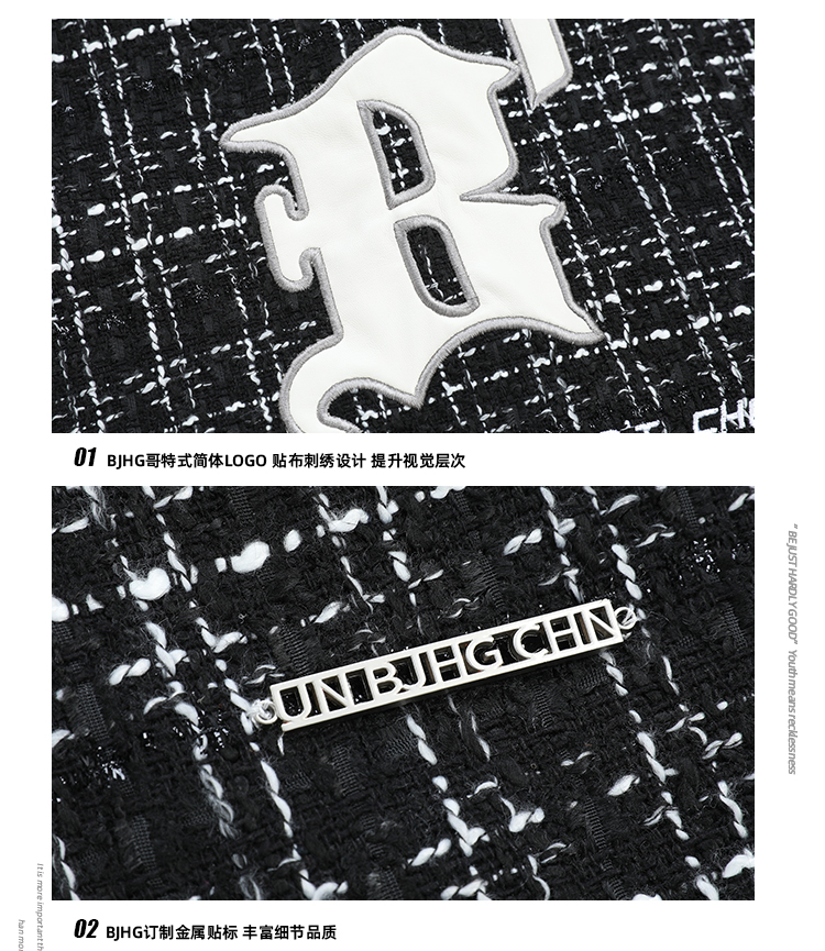 BJHG不计后果秋季小香风美式复古夹克男潮宽松情侣休闲上衣外套女