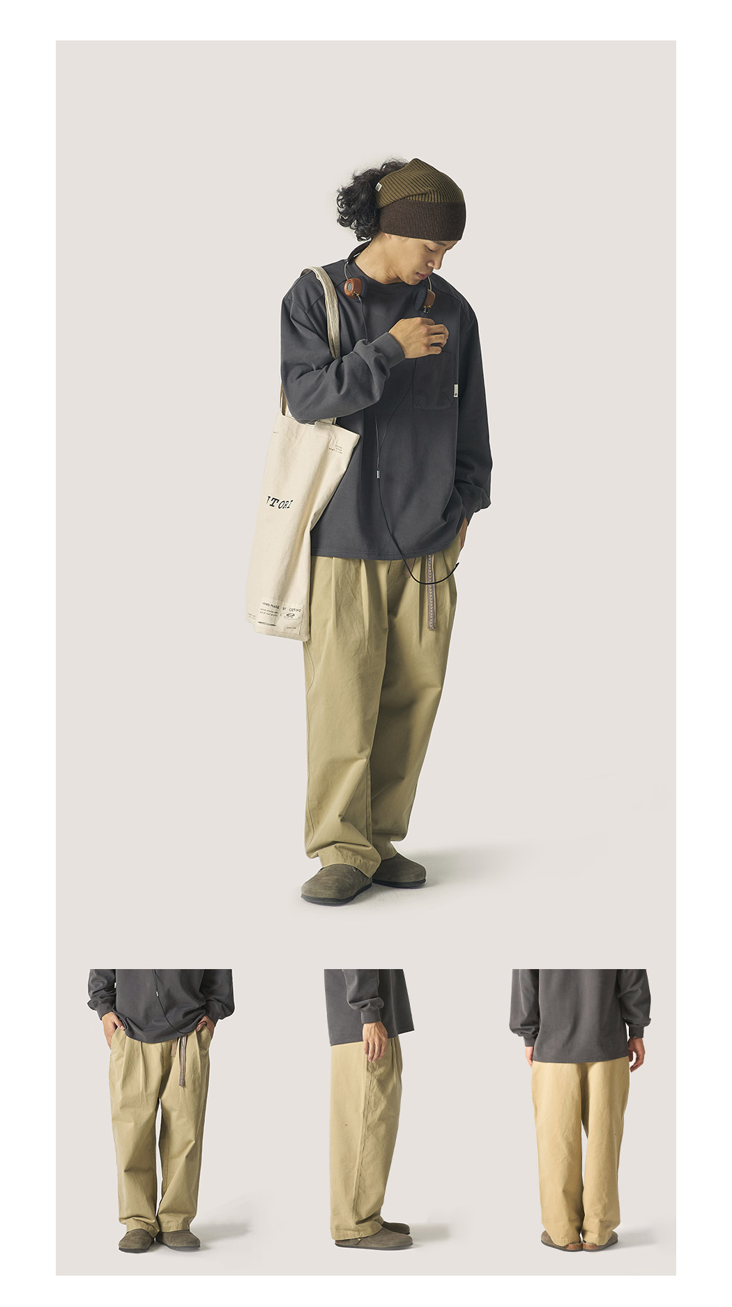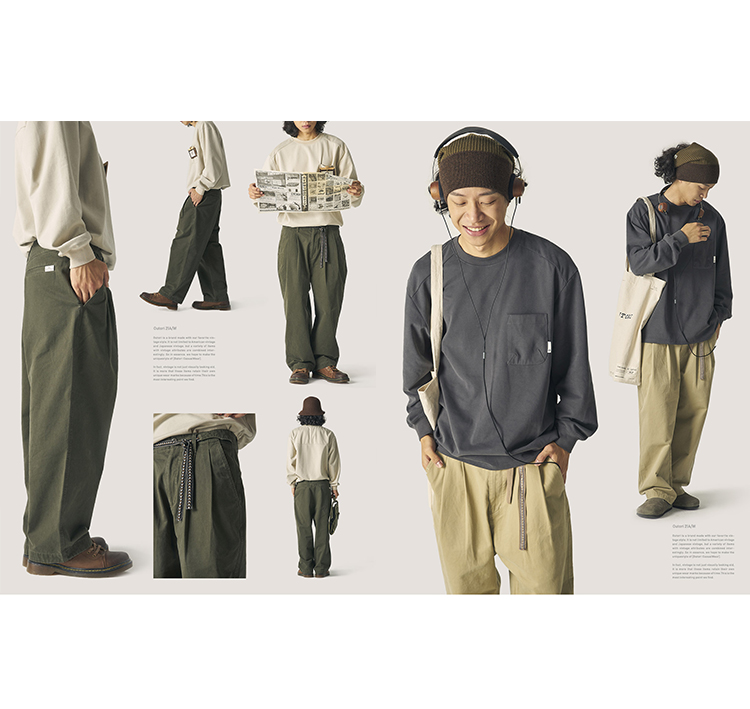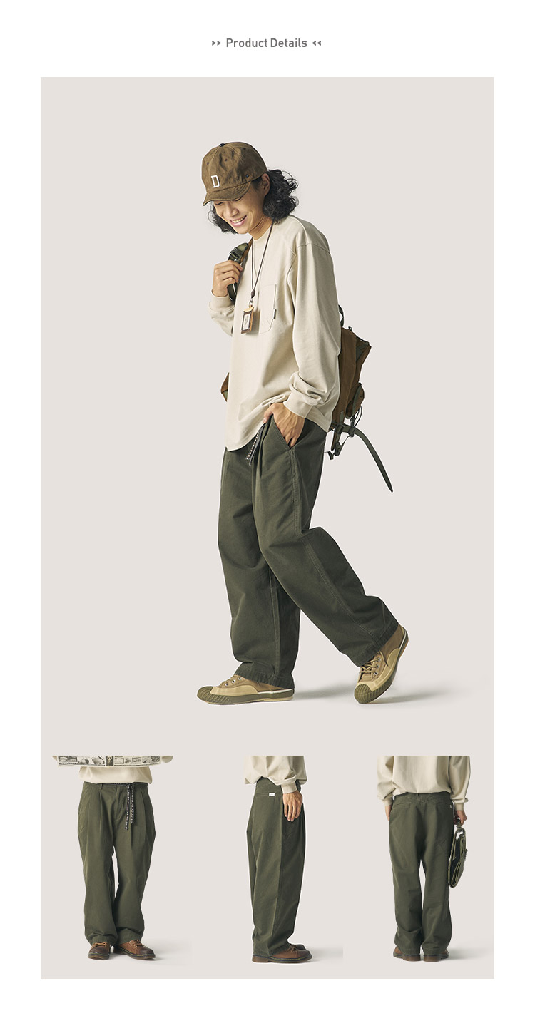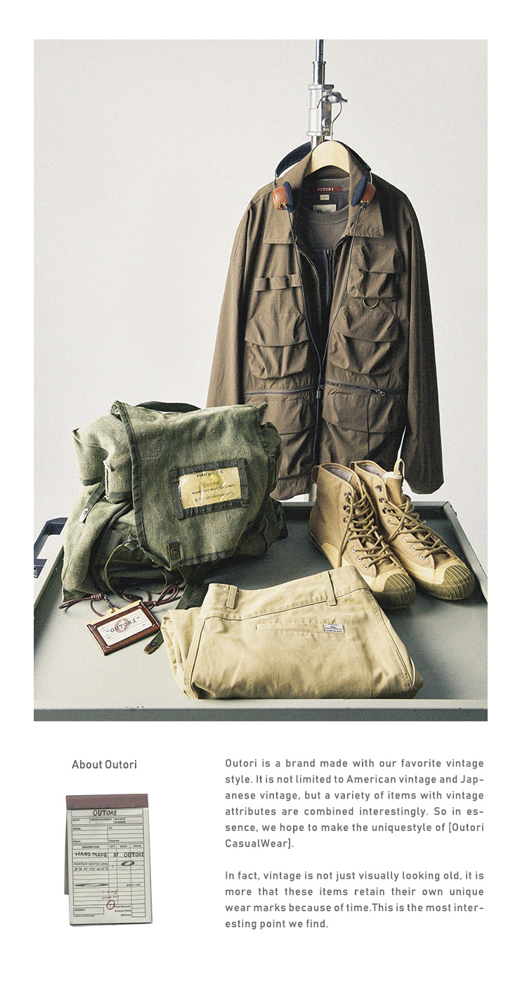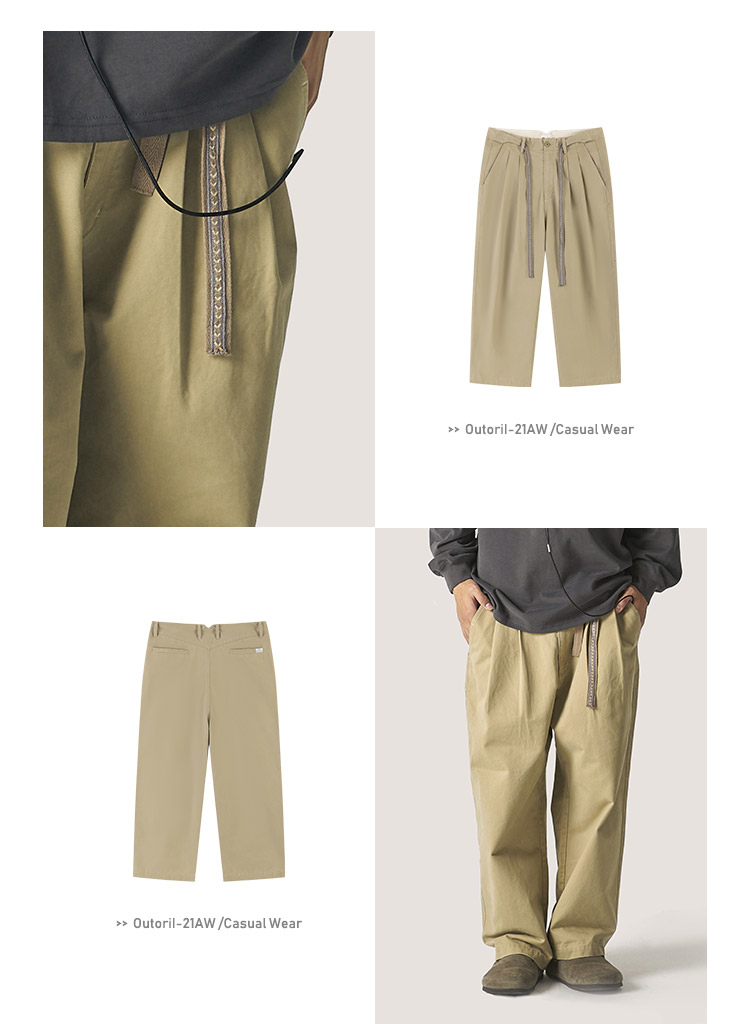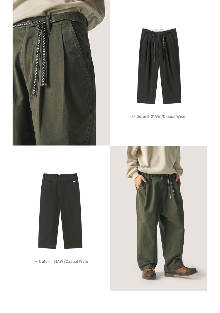 OUTORI/21OUK001/日系复古提花腰带做旧宽松直筒工装休闲九分裤