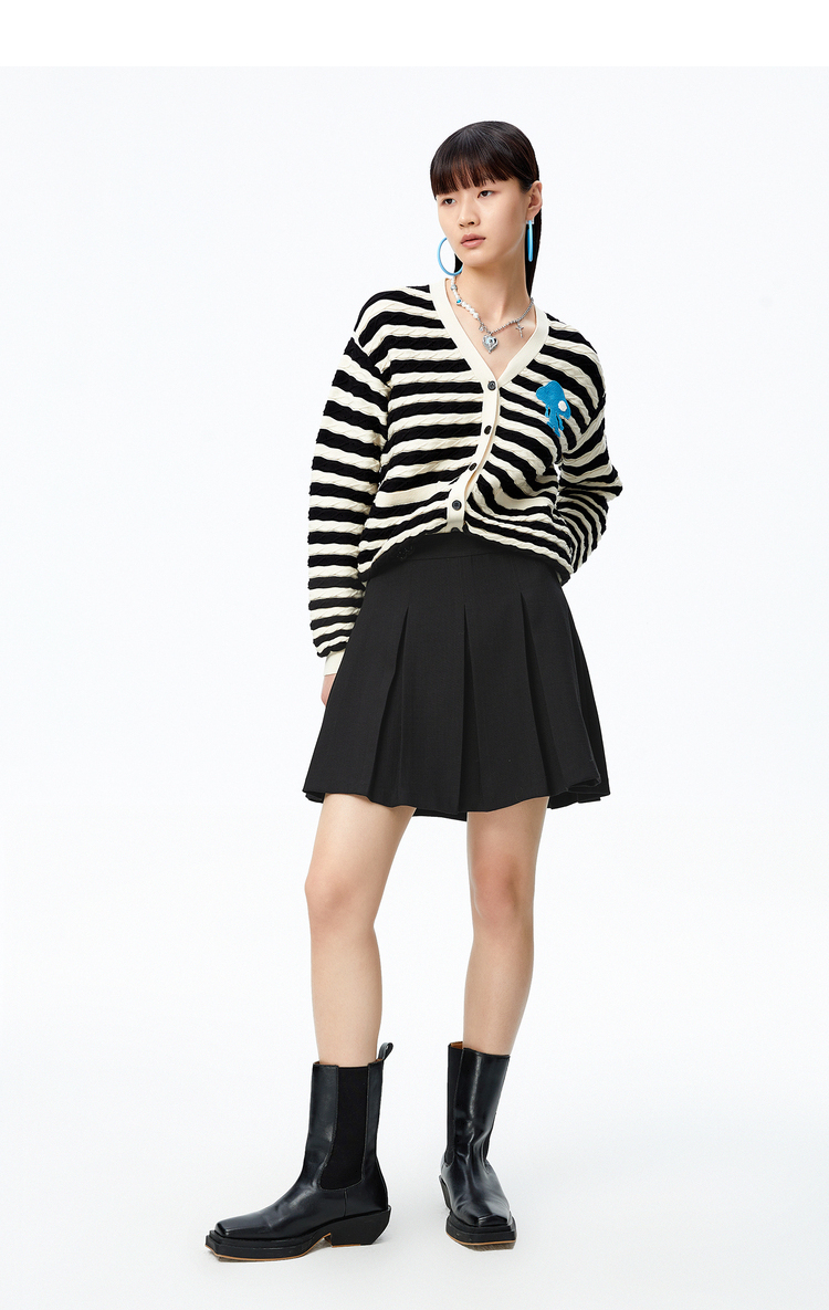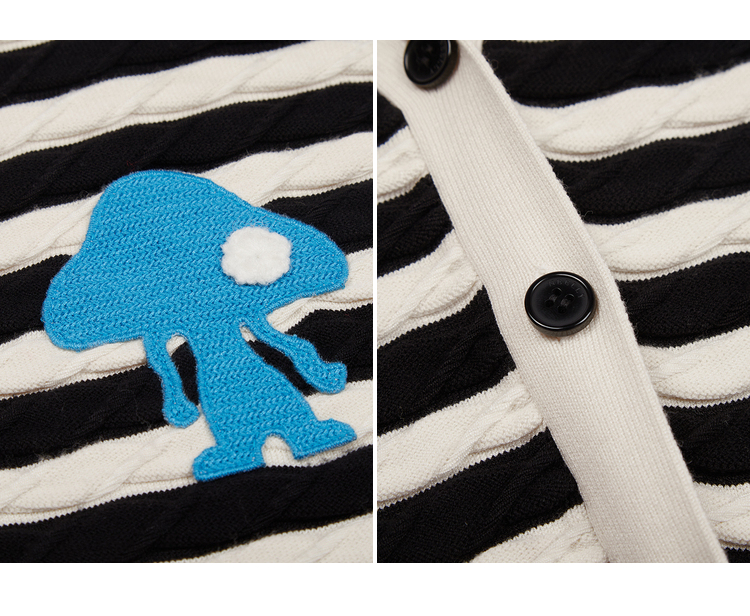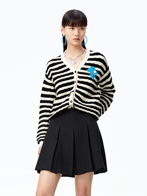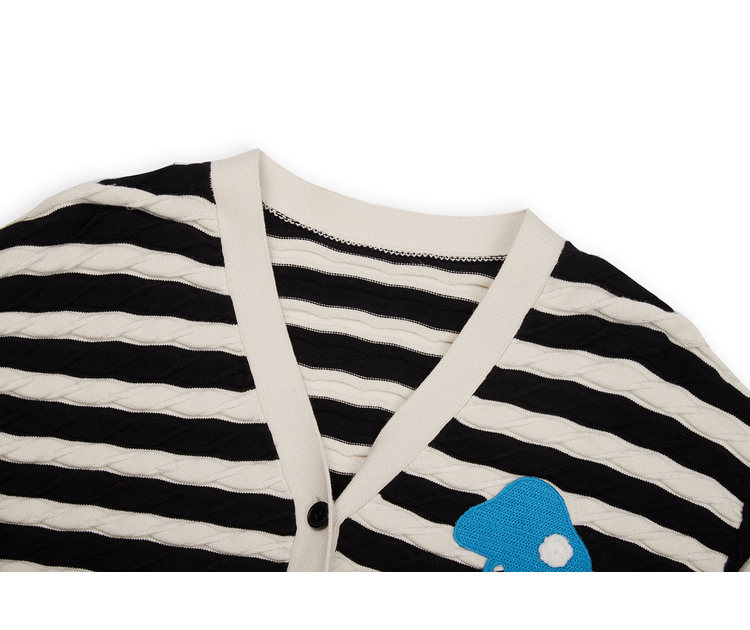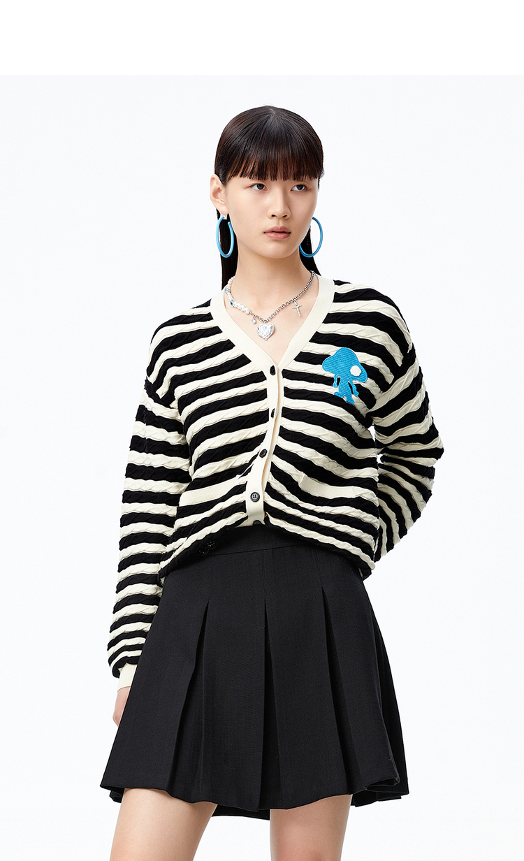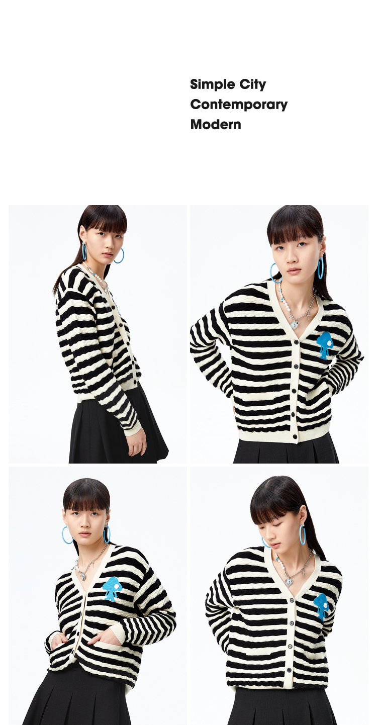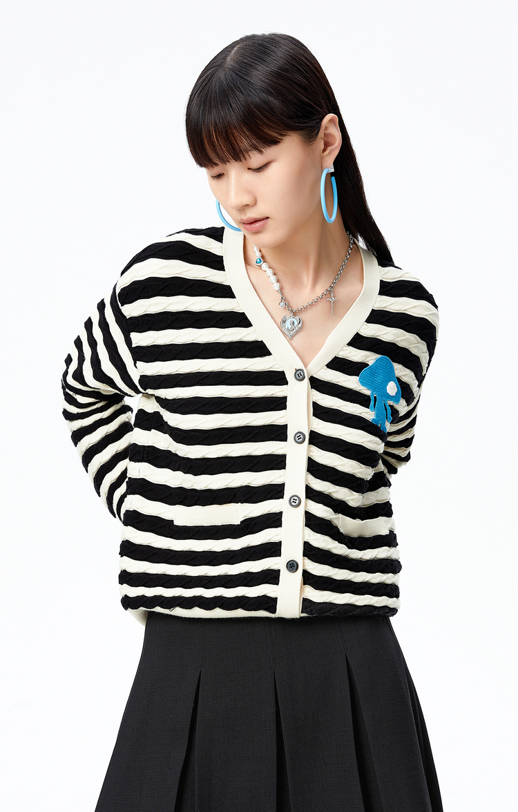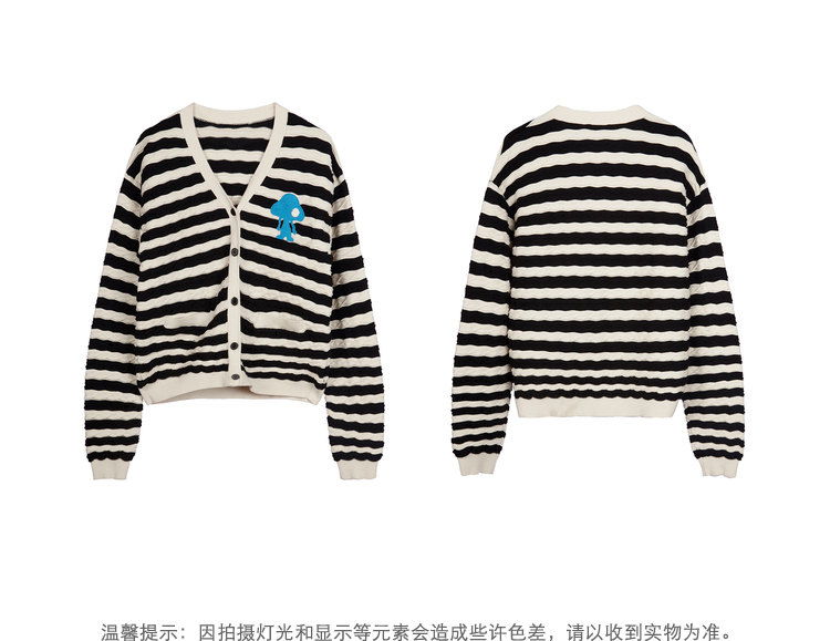 NEELLY纳俪商场同款气质V领条纹针织衫女单排扣毛衣开衫休闲上衣N22083A01100