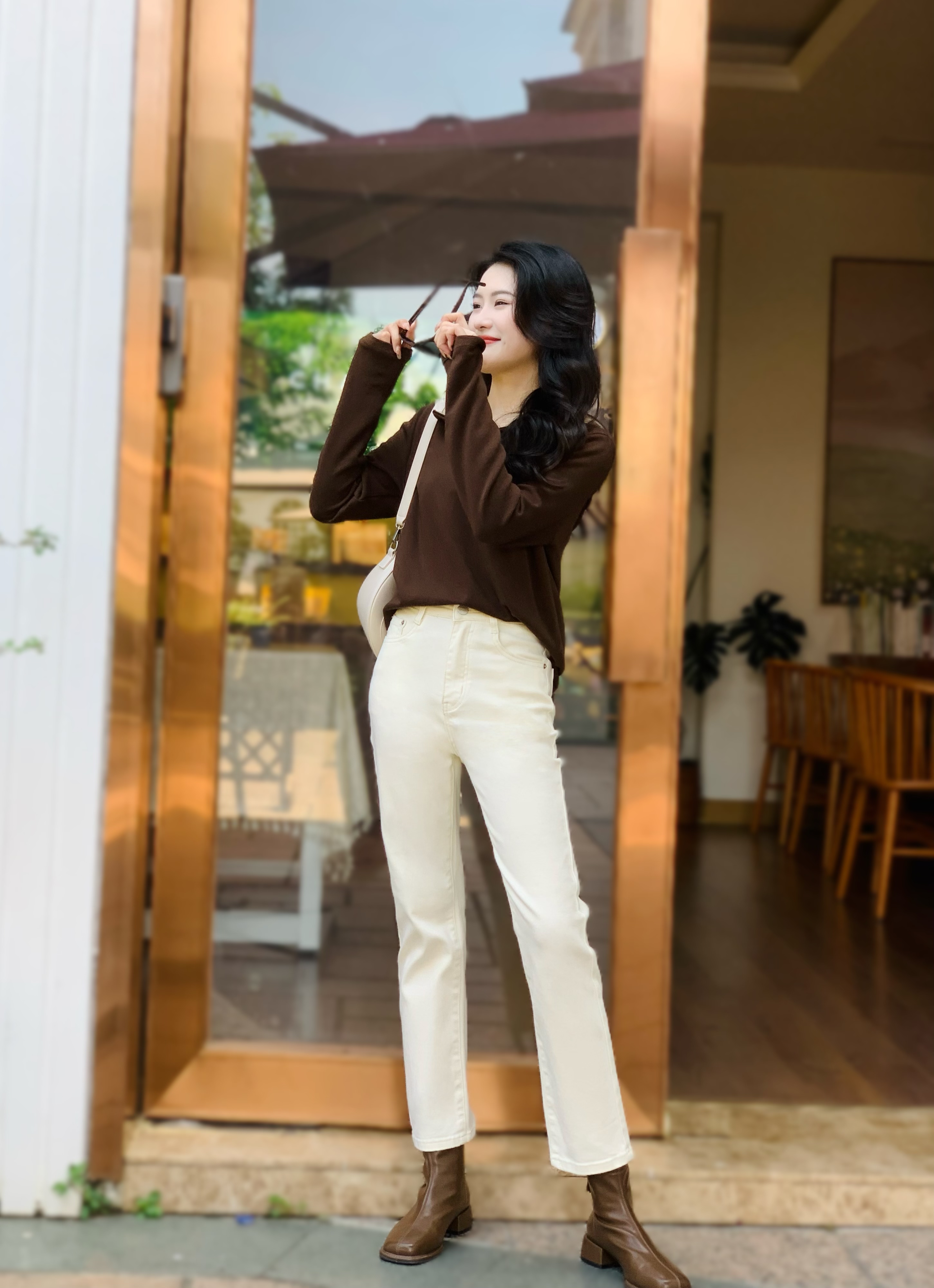 暗黄撞色线,赋予牛仔裤一种高级质感