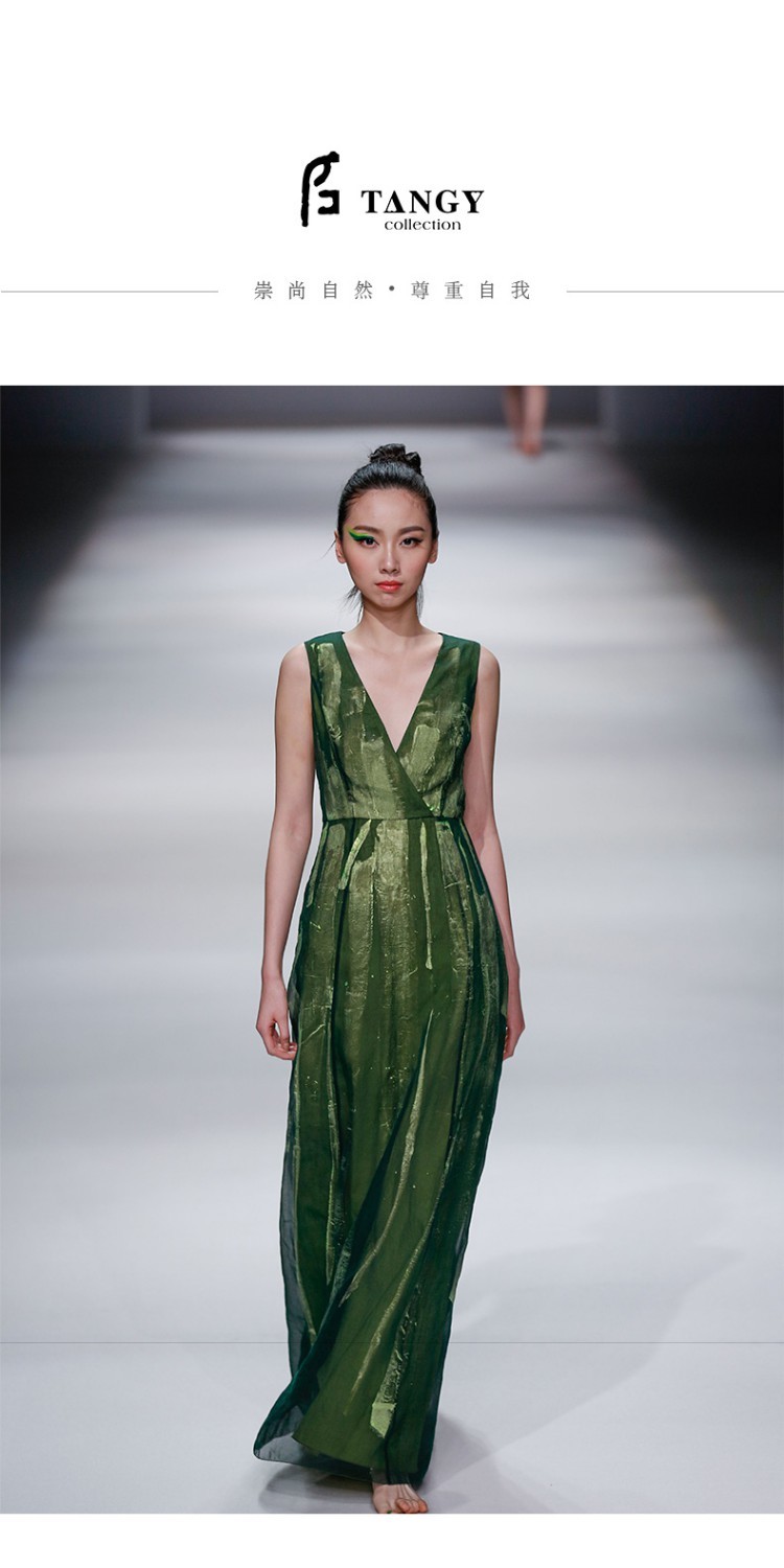 TANGY Collection/天意精品夏季新品禾雀花系列真丝印花礼服连衣裙