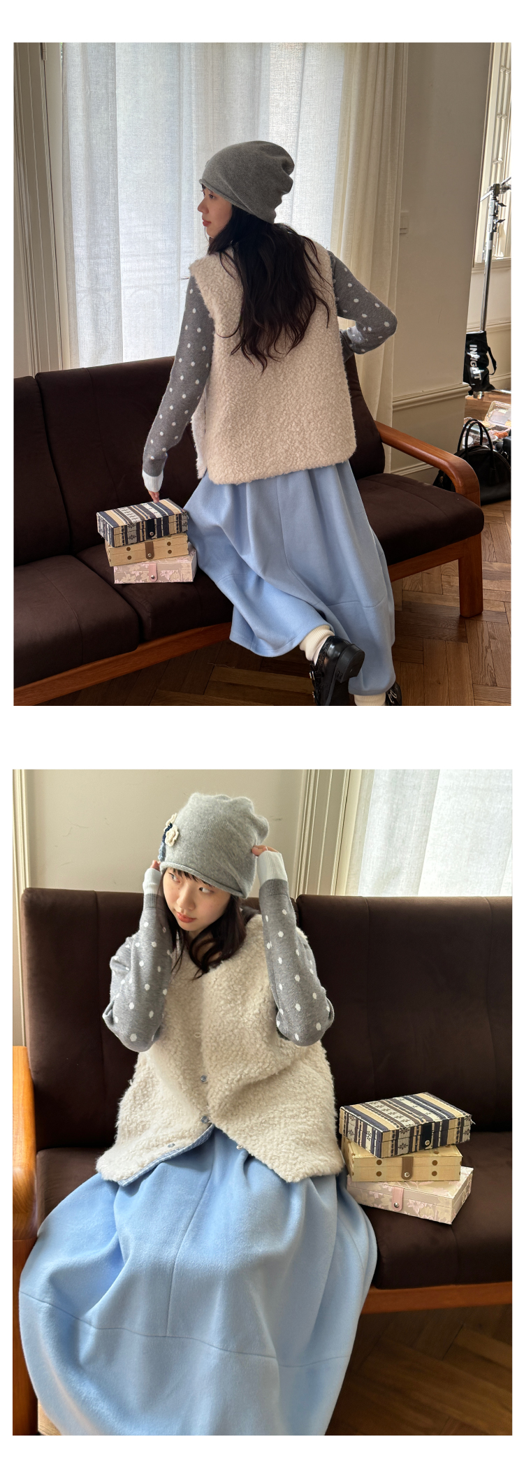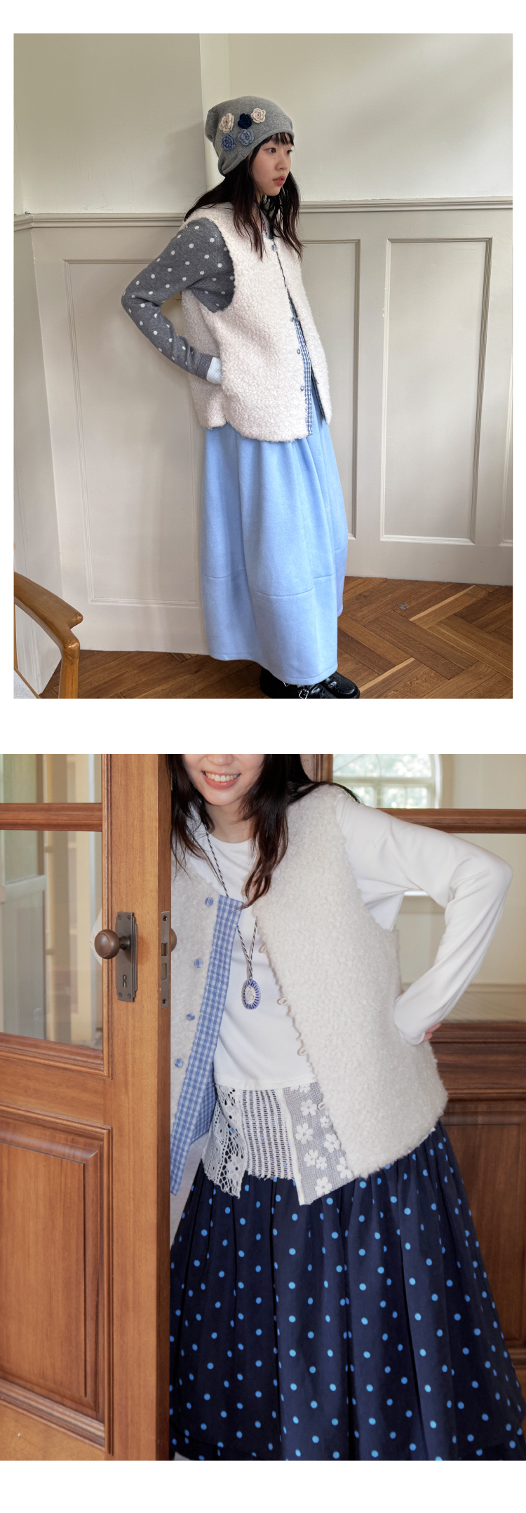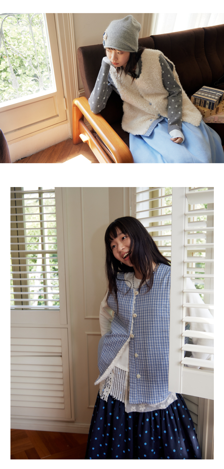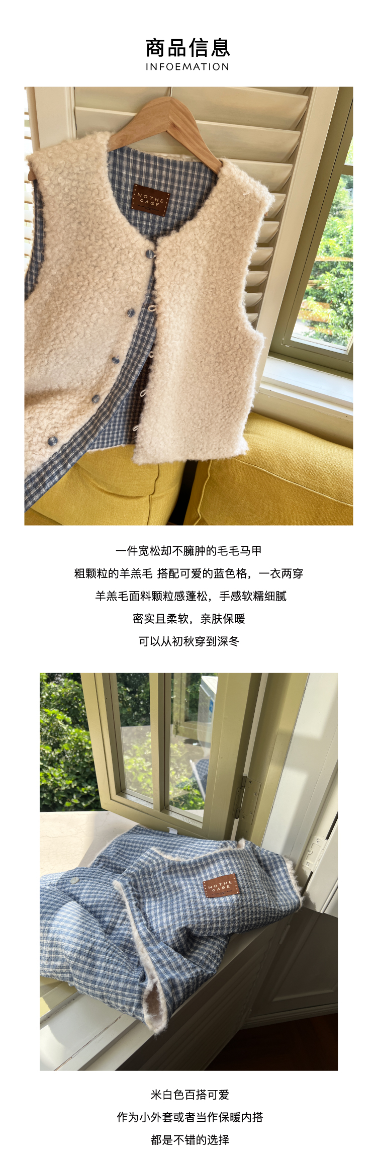 nothe Case布然/NC253213/「奶白格林」拼接保暖两面穿马甲