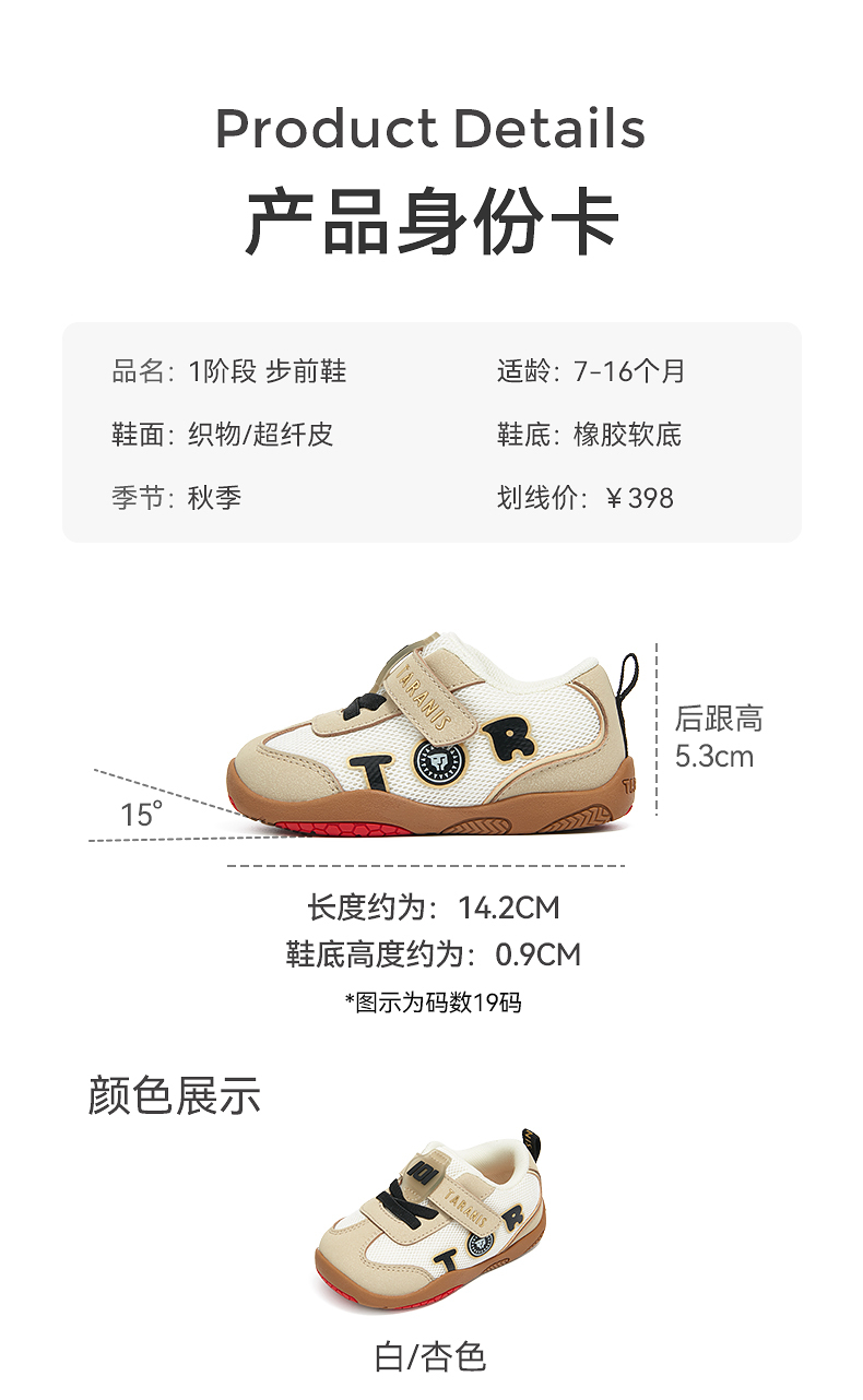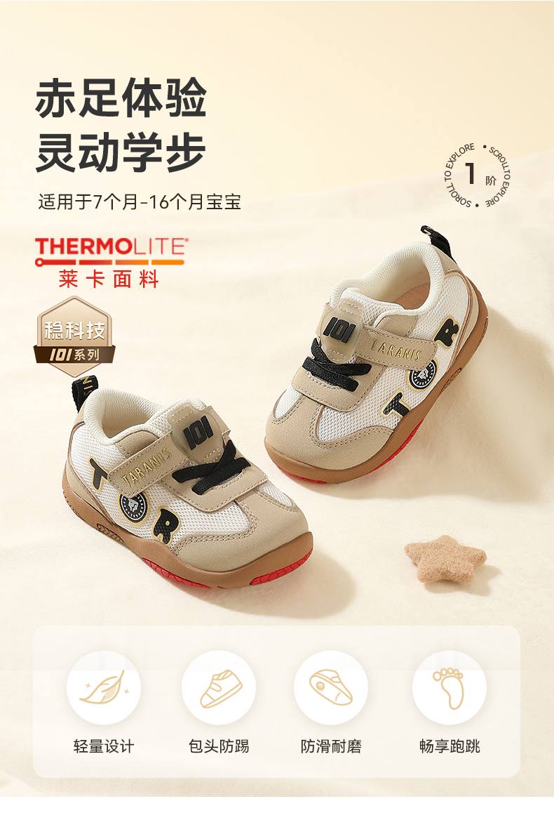 泰兰尼斯101秋季新品男宝宝赤足鞋宝宝鞋婴幼儿女宝宝透气步前鞋 T24B5C6501