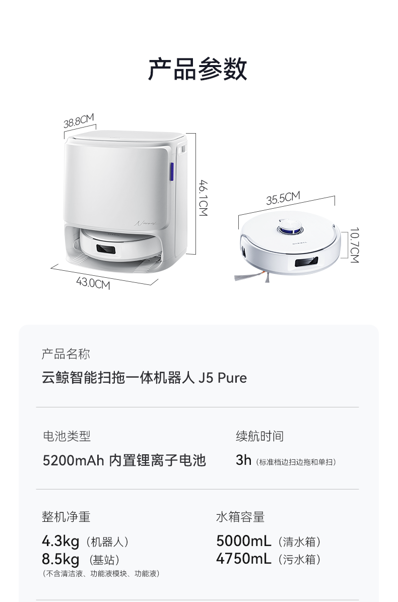 云鲸扫地机器人J5PURE 水箱版【粤湾】