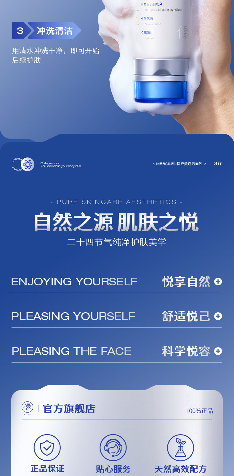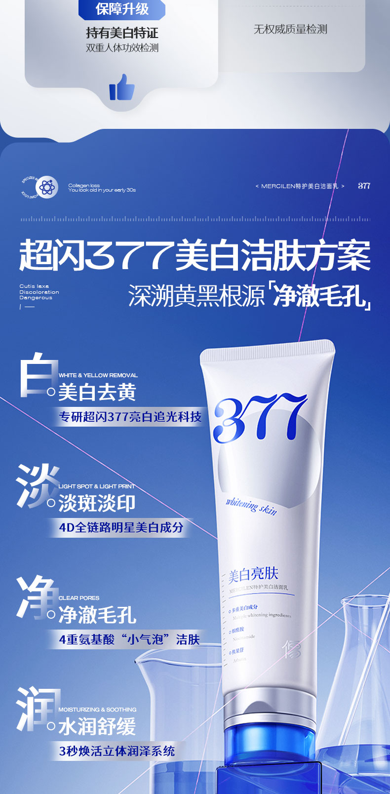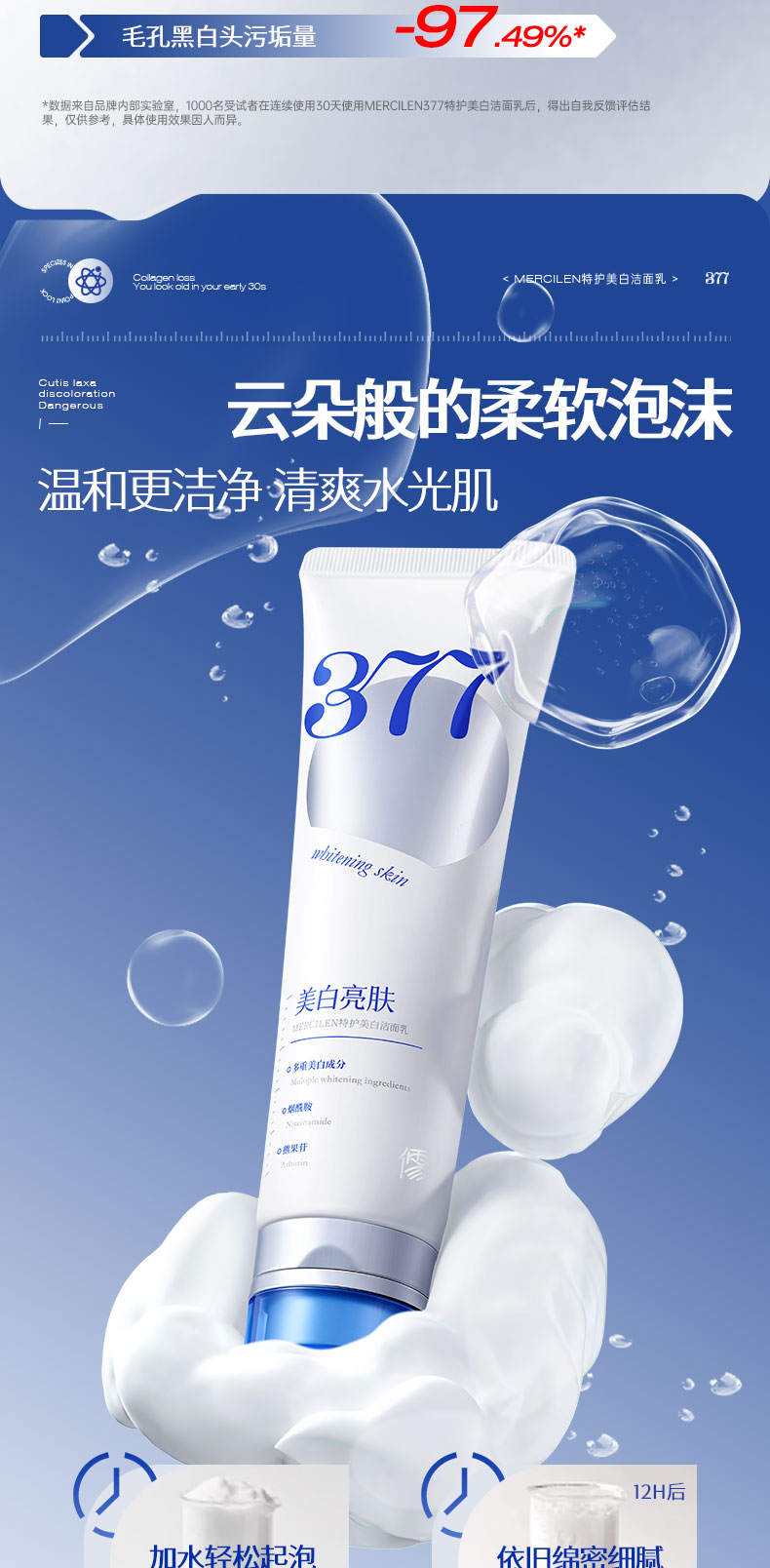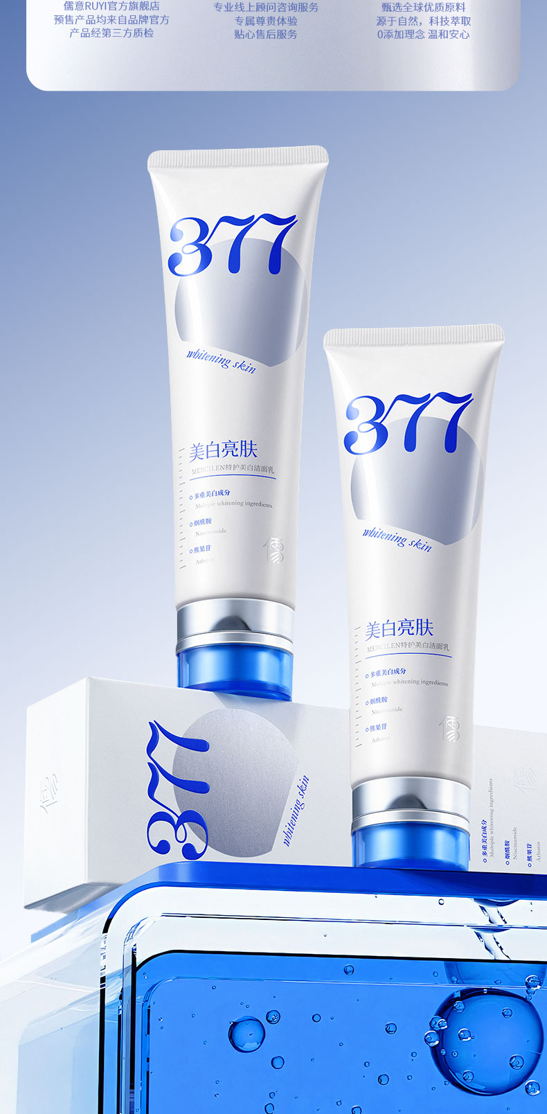 377美白洁面乳150g 氨基酸深层清洁收缩毛孔控油祛痘洗面奶|儒意官方商城