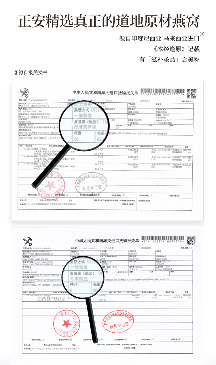 正安 精选燕窝 马来西亚/印度尼西亚进口燕窝 优质大密盏唾液酸含量高 优质原材 干挑/半干挑工艺 一盏一码可溯源 50g/盒【不可用券】
