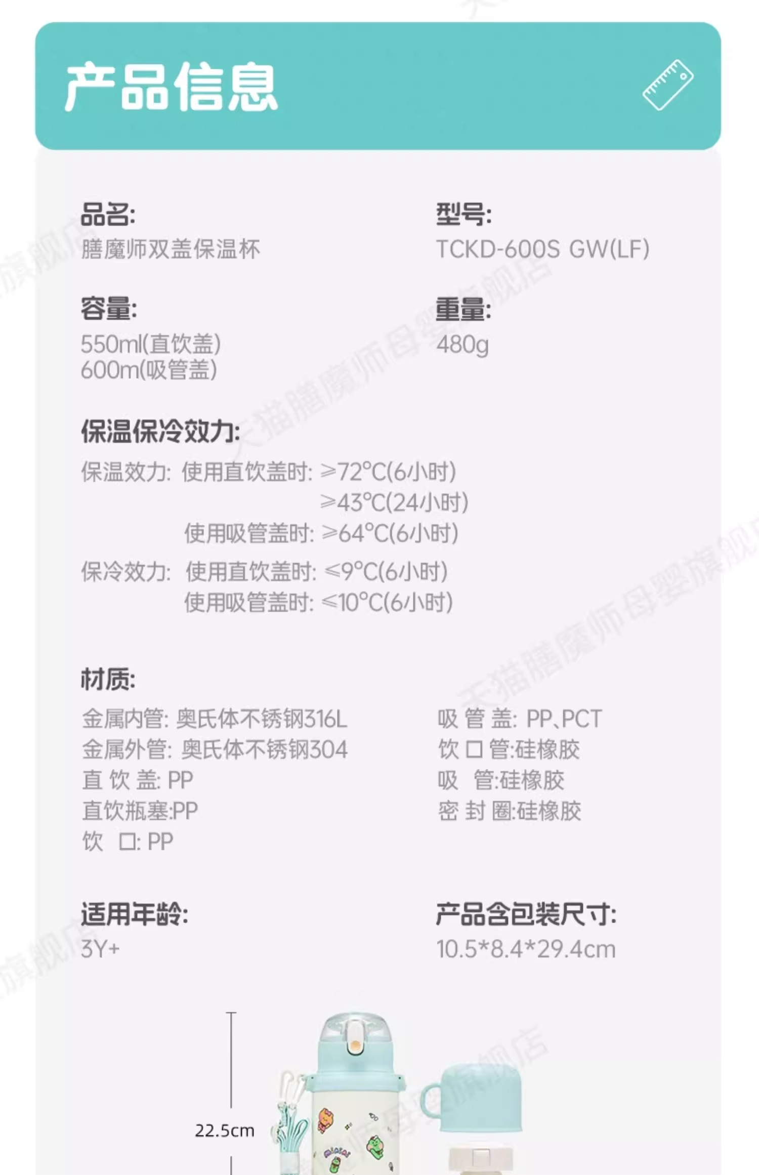膳魔师minini系列一杯双盖保温杯550/600mL